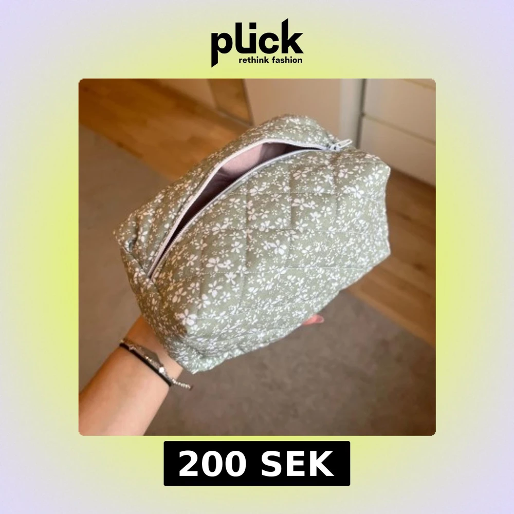 Egensydd necessär i grönt med vita blommor. Den är quiltad och har en praktisk dragkedja upptill!❣️