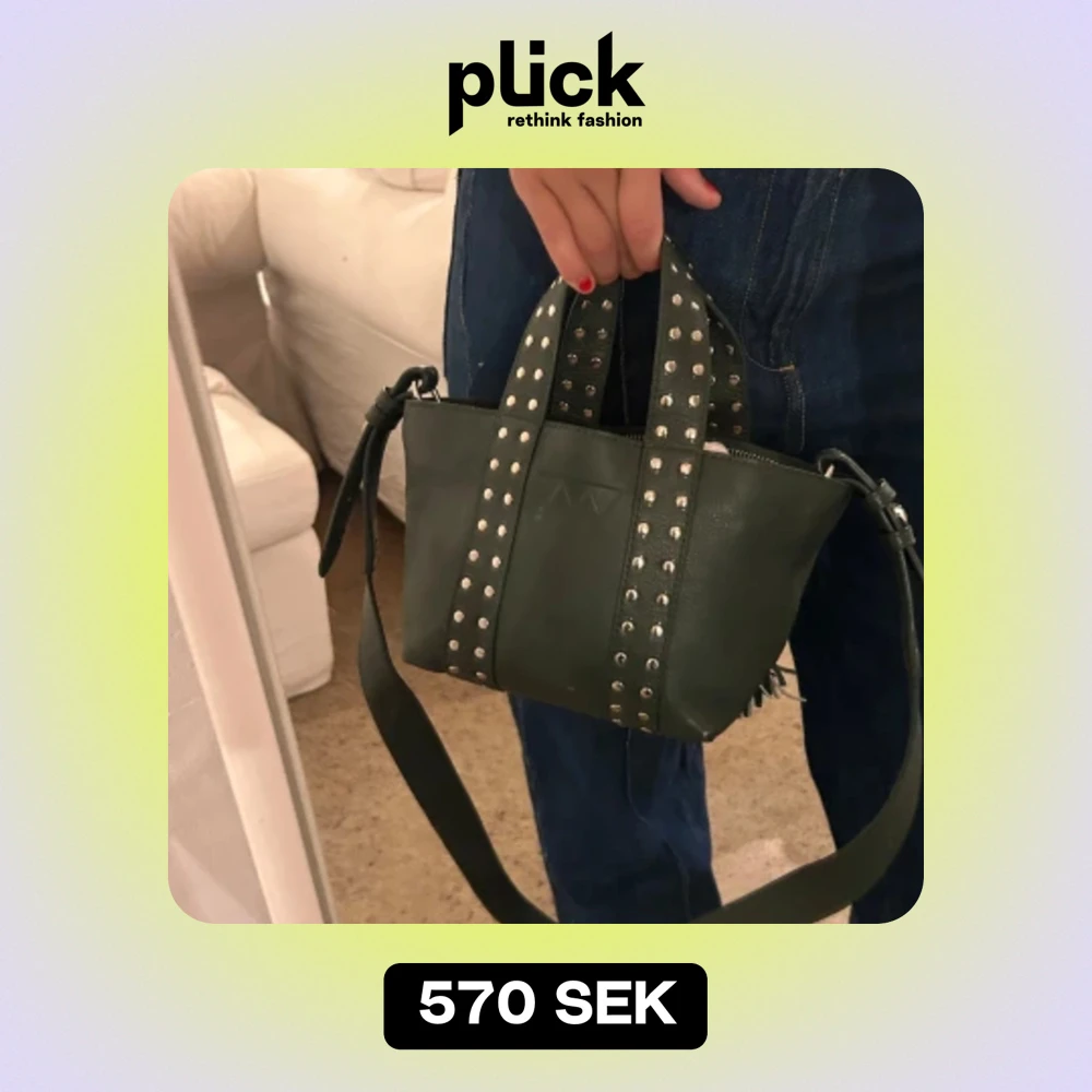 Säljer nu min fina väska från get the gallop, då jag tyvärr inte får användning för den längre. Den är äkta läder och nypris är 1999kr. men slut i alla färger. Den är grön med nitar, och långt band medföljes.