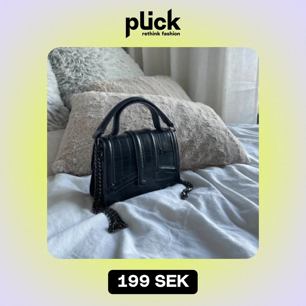 perfekt väska till alla tillfällen, älskar storleken på denna!! det är en väska med en insperering av ormskinn med en svart kedja runt väskan. väskan kan användas i 3 st olika lägen💕
