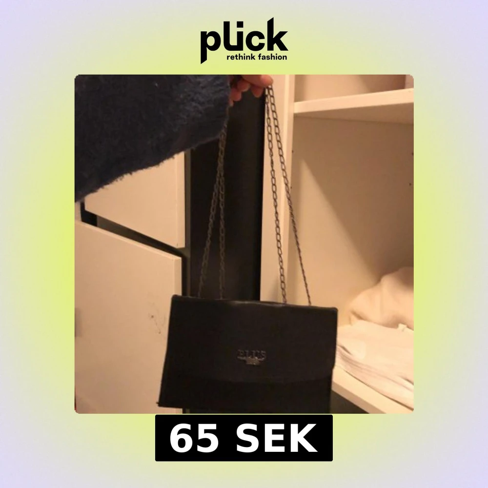 Snygg svart axelväska från PLUS BAG med stilren design och metallkedja som axelrem.Väskan är gjord i skinnimitation.