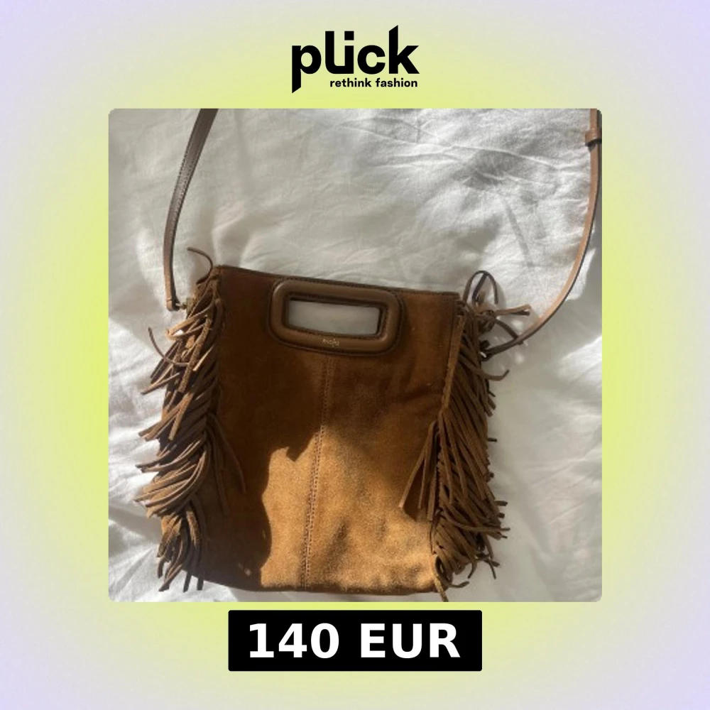 Snygg brun axelväska från Maje i mocka med coola fransdetaljer på sidorna och ett stilrent handtag upptill. Väskan har en justerbar axelrem. 💞💞 Lite använd