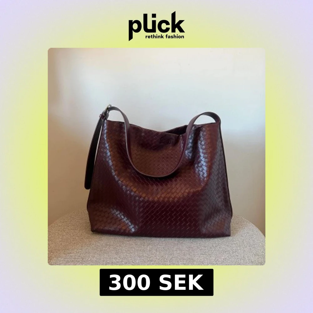 Säljer en stor vinröd axelväska i flätat skinn med bred axelrem. Väskan har en mjuk, rymlig form och stängs med magnetknapp. Invändigt finns ett fack med dragkedja. Perfekt för dig som vill ha plats för allt du behöver under dagen.