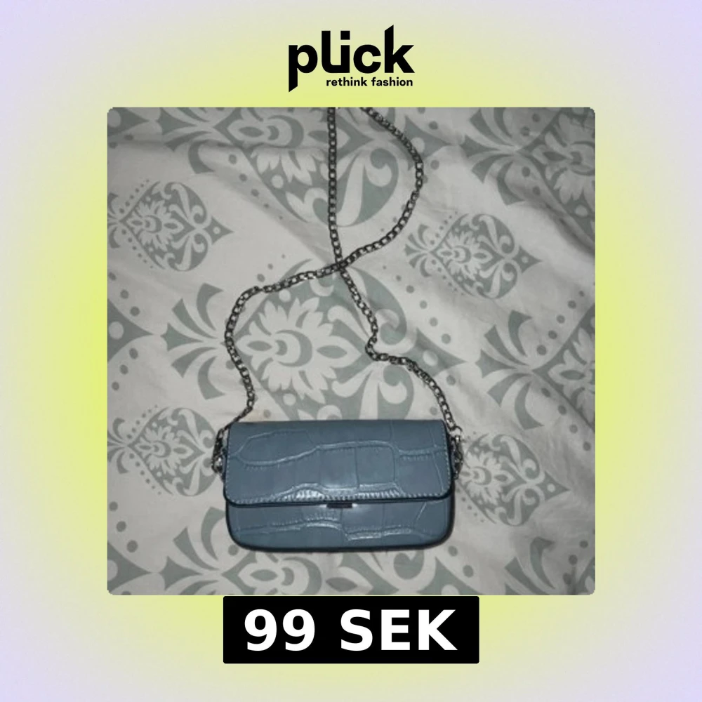 Snygg blå axelväska med krokodilpräglat mönster och en stilren kedjerem. Väskan har en praktisk storlek och ett enkelt spänne för att hålla dina saker säkra. Perfekt för att ge din outfit en trendig touch.