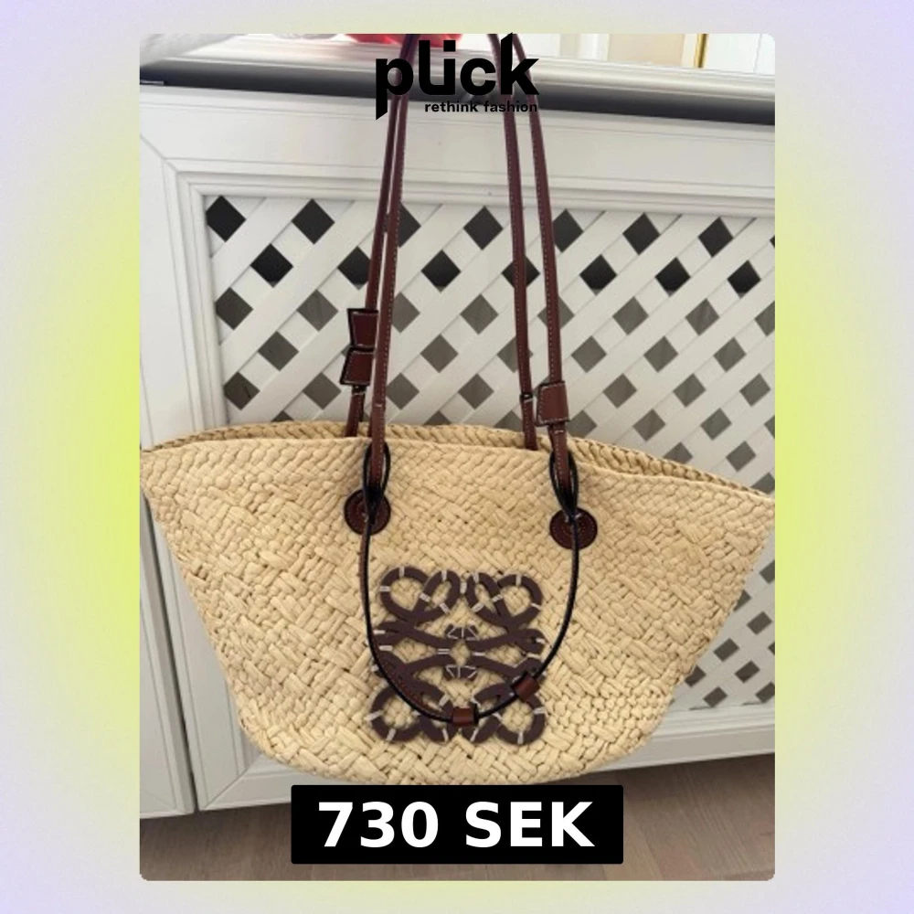 Snygg shoppingväska i flätad strådesign med bruna handtag. Perfekt storlek för att få plats med allt du behöver. Väskan har en avslappnad men ändå lyxig känsla och passar till många olika outfits. Köpt utomlands. Skriv för mer info. Priset kan diskuteras vid snabbaffär. Använt ett fåtal gånger