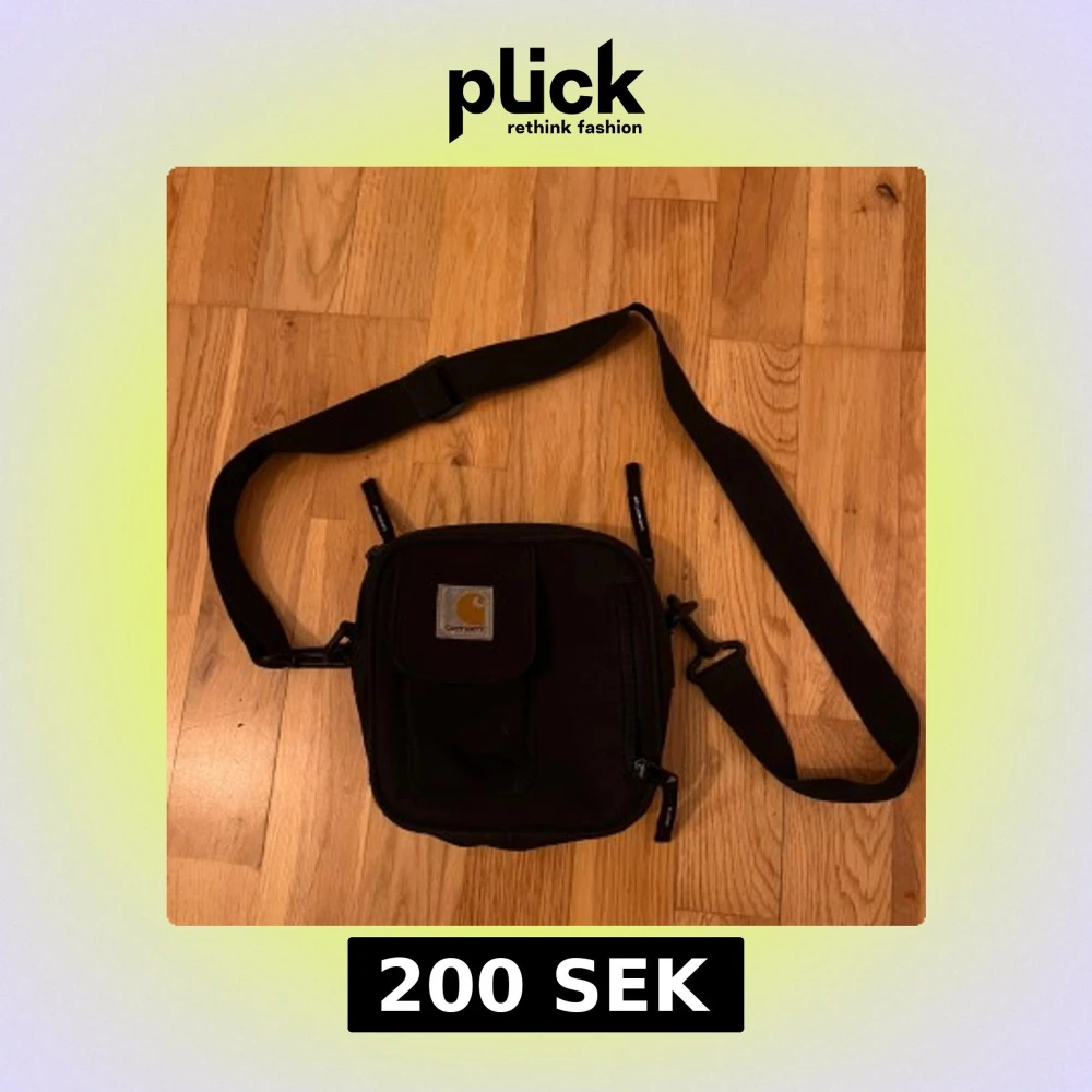 Säljer en stilren svart axelväska från Carhartt. Väskan har justerbar axelrem och flera praktiska fack med dragkedja. Perfekt för att bära med sig det nödvändigaste på ett smidigt sätt. Kardborren funkar inte så bra.