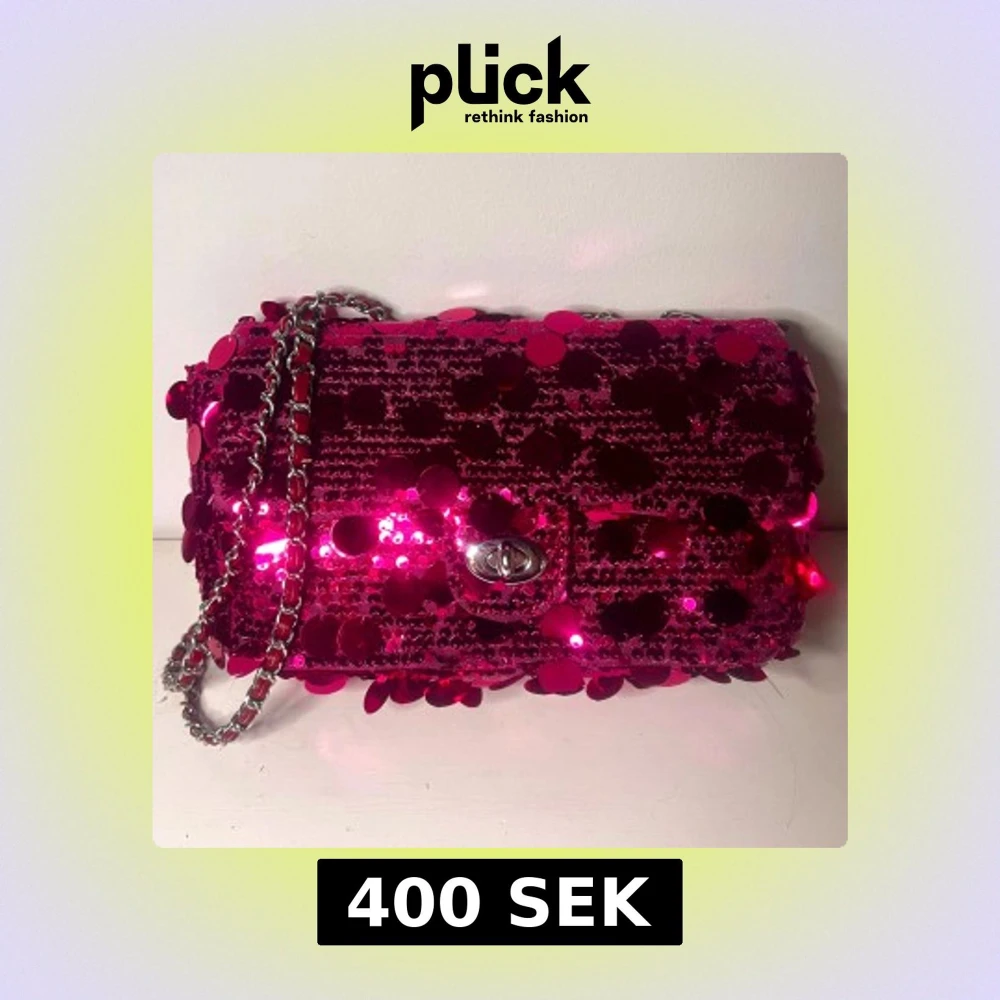 Snygg rosa axelväska täckt med glittrande paljetter och en elegant kedjerem. Perfekt för att lysa upp vilken outfit som helst. Väskan har en stilren låsdetalj framtill.