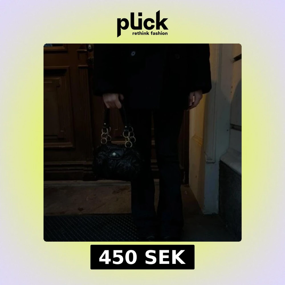 Säljer en svart handväska med ormmönster och snygga guldfärgade ringdetaljer på handtagen. Väskan har ett lock med knappstängning och är tillverkad i skinnliknande material. Perfekt storlek, rymlig och supersnygg!!💕💕💕