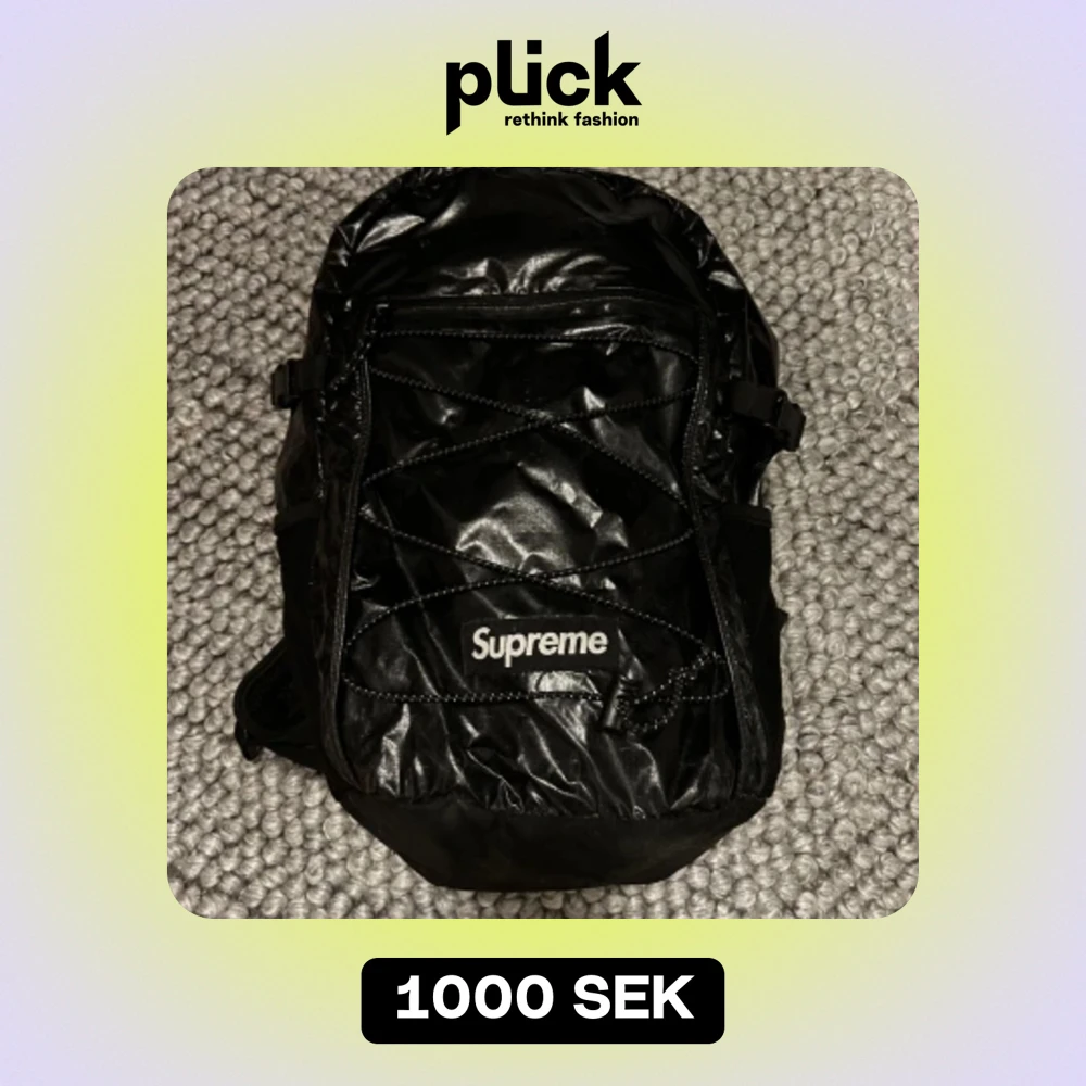 Supreme back pack FW17 Sällsynt supreme ryggsäck som är i använt skick. Dragkedja till det stora facket är trasigt men går att laga om man går till en skräddare. Priset går att diskuteras vid snabb affär