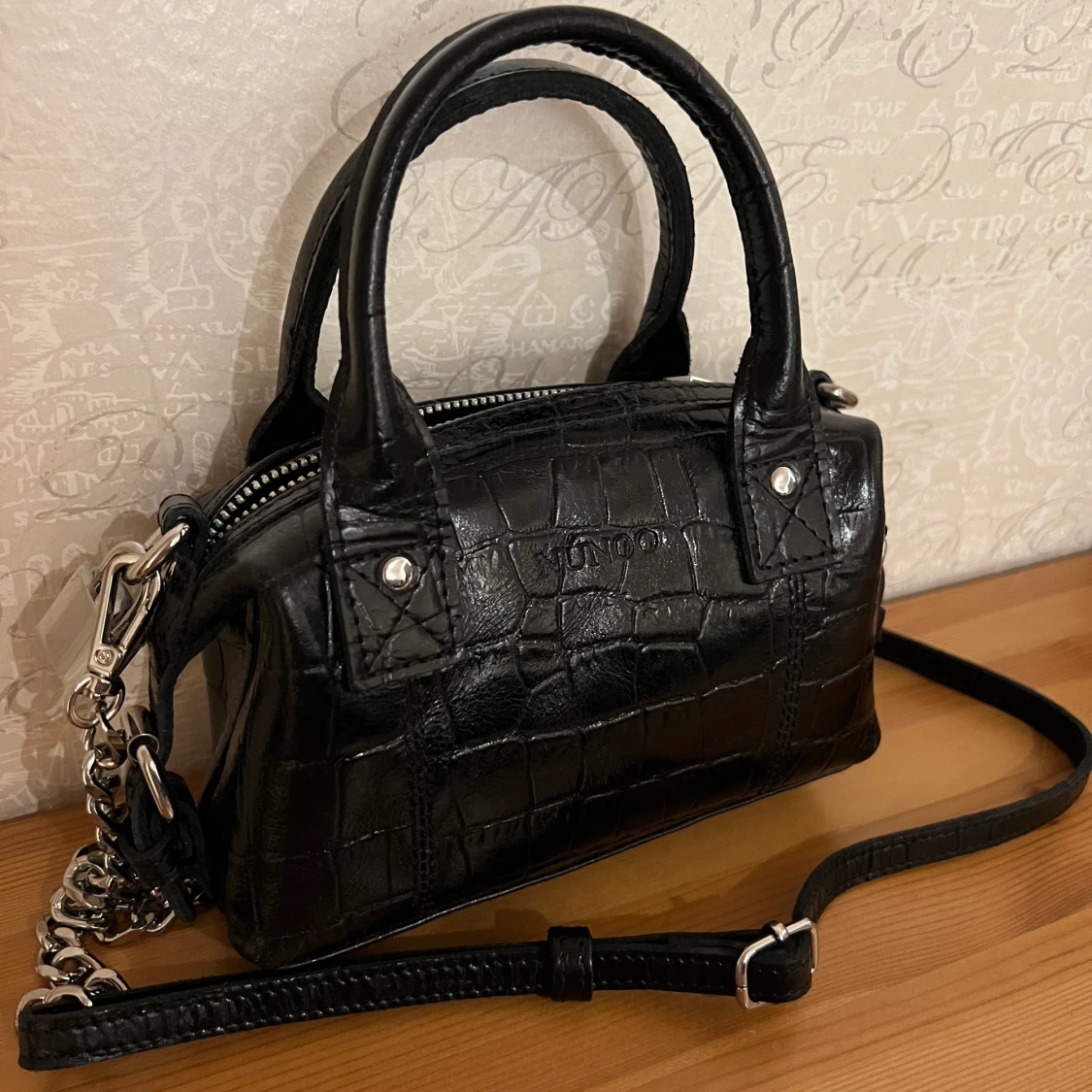Säljer min fina Nunoo väska. Modellen heter Mini Bobby Croco och så den har typ krokodil-liknande mönster. Använd 1 gång, köptes för 899 kr! Skriv vid intresse💕 köparen står för frakten som kostar 66kr (spårbar) ❗️kan tänka mig gå ner ngt i pris