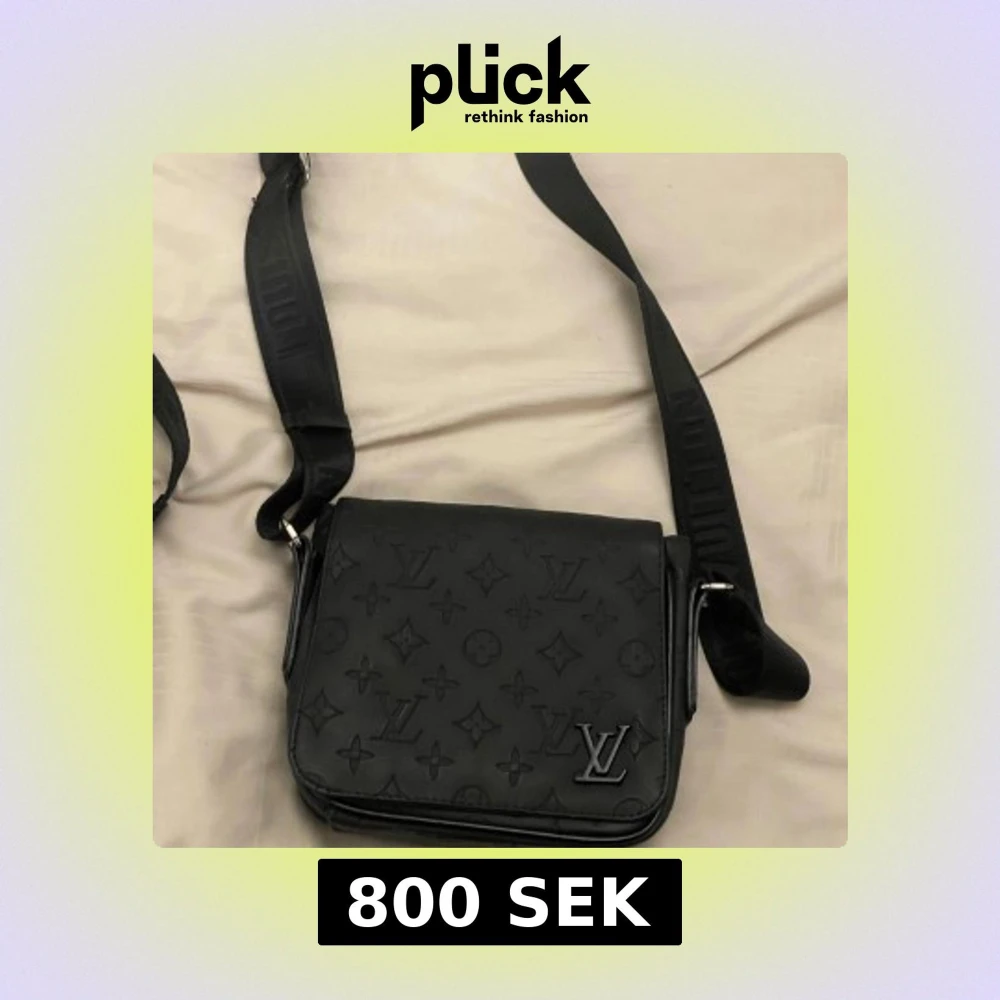 Snygg svart axelväska i skinn med klassiskt monogrammönster. Väskan har justerbar axelrem med , ett stort fack och dragkedja på baksidan. Perfekt för dig som vill ha en stilren och lyxig accessoar.