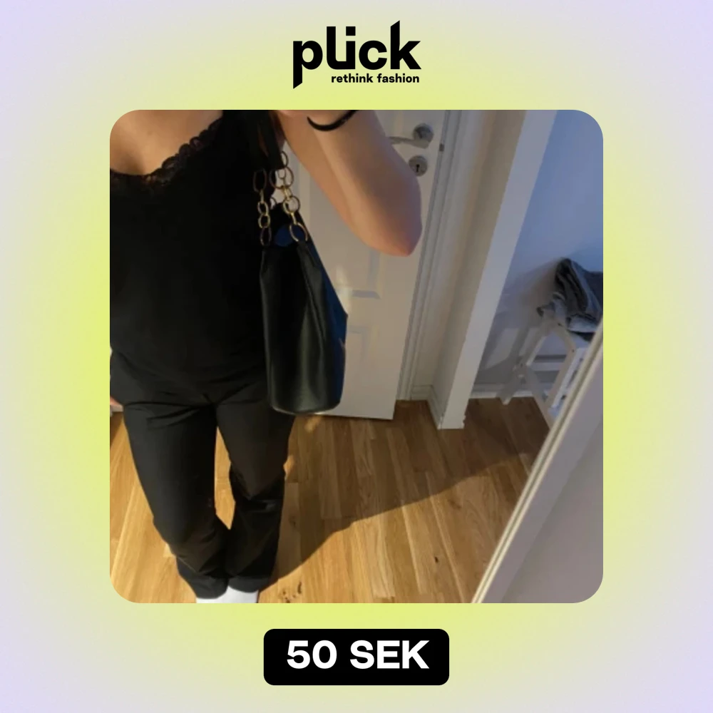 Väskan är i bra skick men använd, den är helt svart med guld kedja, rymmer mycket, Längd: 29,5 cm Bredd: 11,5 cm Höjd: 25,5 cm
