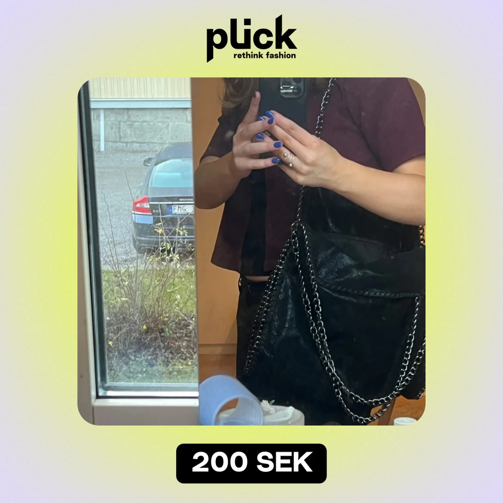 Snygg svart axelväska med glittrig yta och kedjedetaljer. Perfekt för en utekväll eller fest. Väskan har en stilren design och är rymlig nog för alla dina nödvändigheter. Lik Stella mcourtney väskan