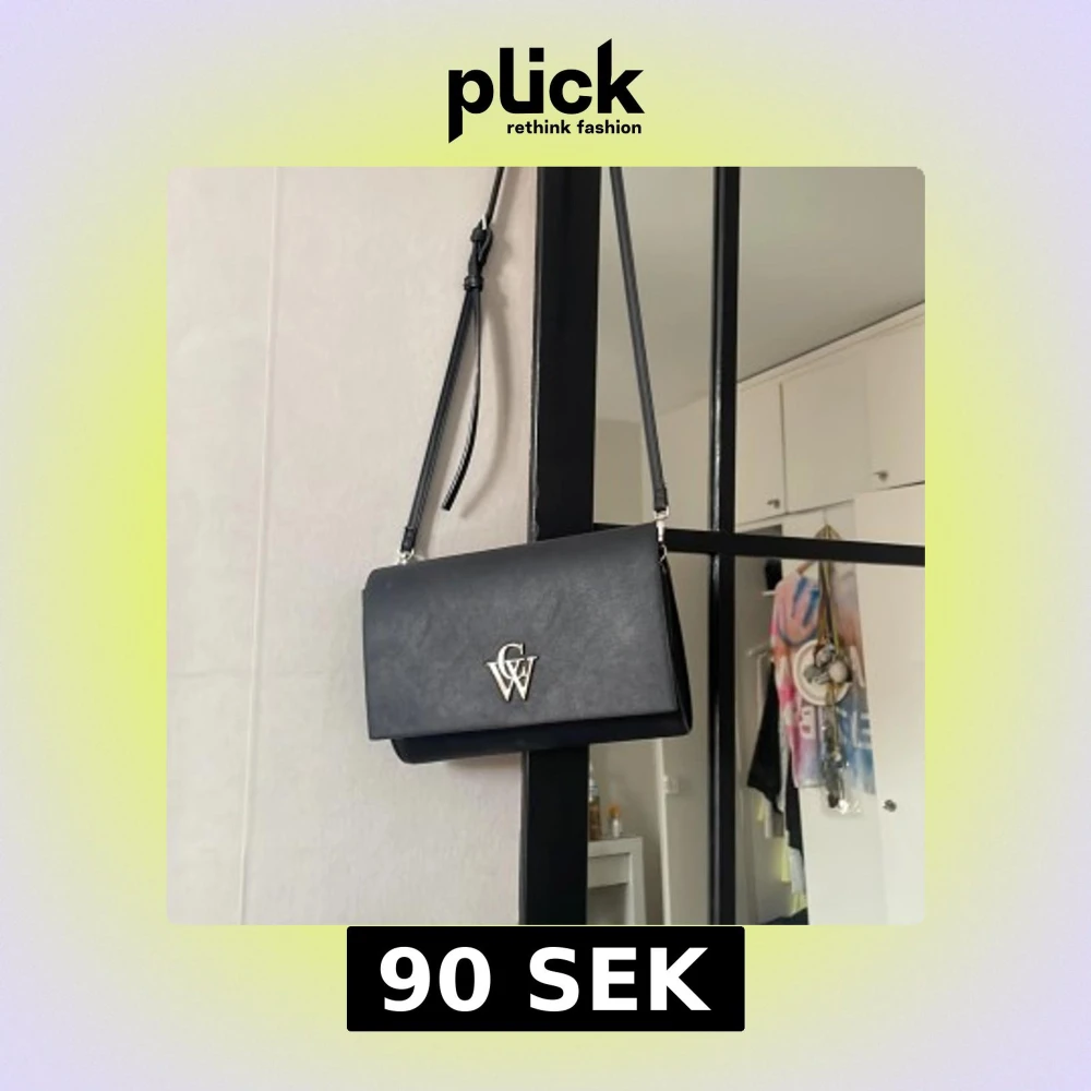 Snygg svart axelväska. Väskan har justerbar axelrem och är tillverkad i slätt skinnimitation. Perfekt storlek för mobil, plånbok och andra essentials.