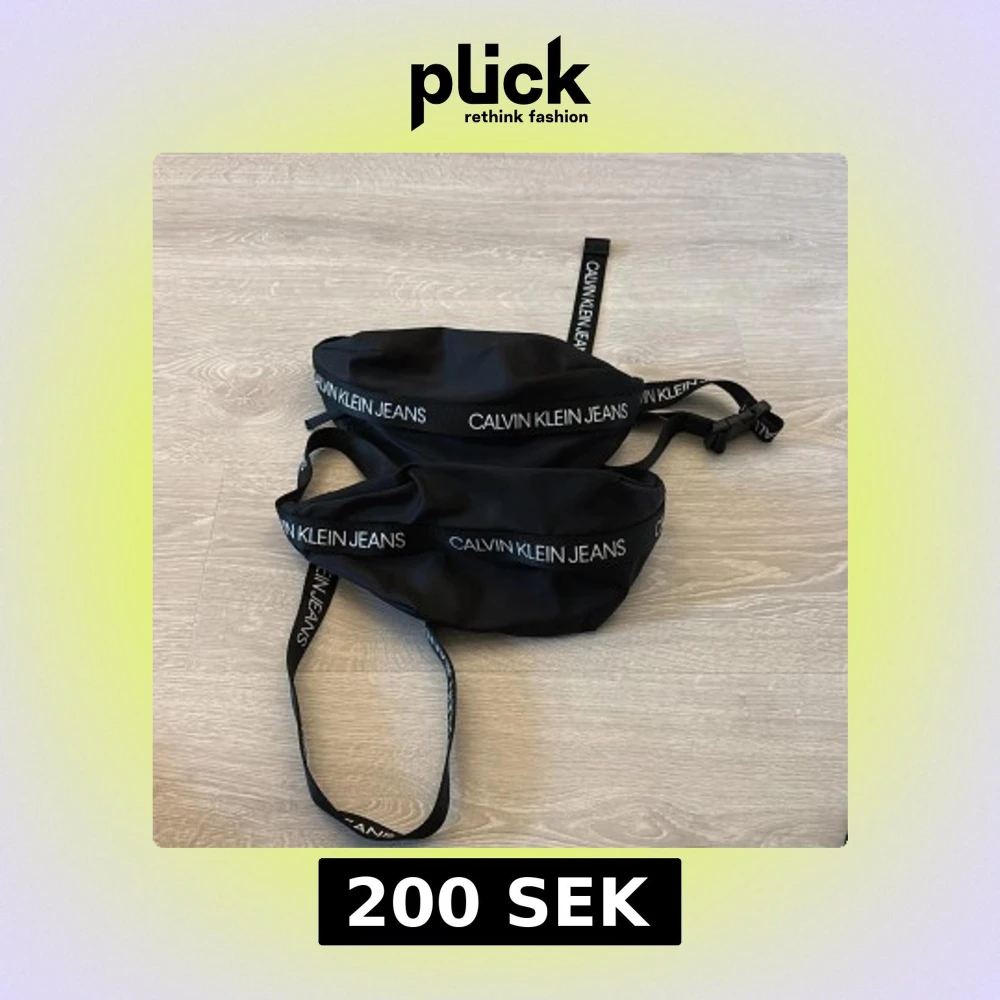 Snygg svart axelväska från Calvin Klein Jeans med justerbar rem och tydlig logga längs bandet. Väskan har en enkel, rundad form och är tillverkad i slitstark polyester. Perfekt för att bära dina viktigaste grejer och ge din outfit en cool touch. 2 st för 100 kr