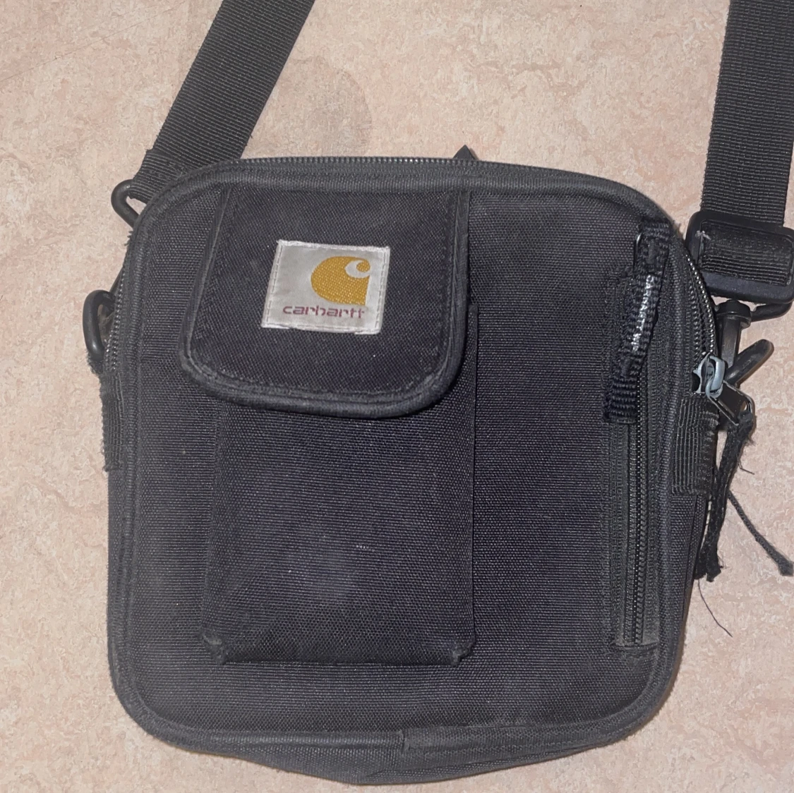 Säljer en snygg och praktisk svart axelväska från Carhartt. Väskan har en justerbar axelrem och flera fack med dragkedja för enkel förvaring. Perfekt för vardagsbruk eller när du är på språng!
