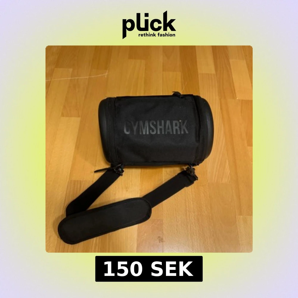 Säljer en svart axelväska från Gymshark med justerbar axelrem och hårda gavlar. Väskan är kompakt och perfekt för gymmet eller vardagen, med tydlig logga på framsidan. Tillverkad i slitstark polyester.