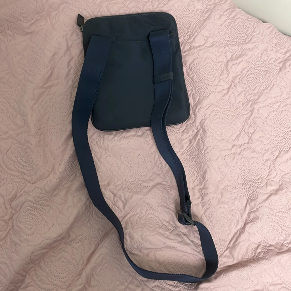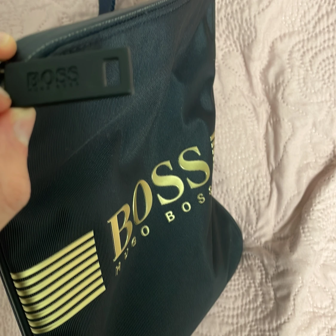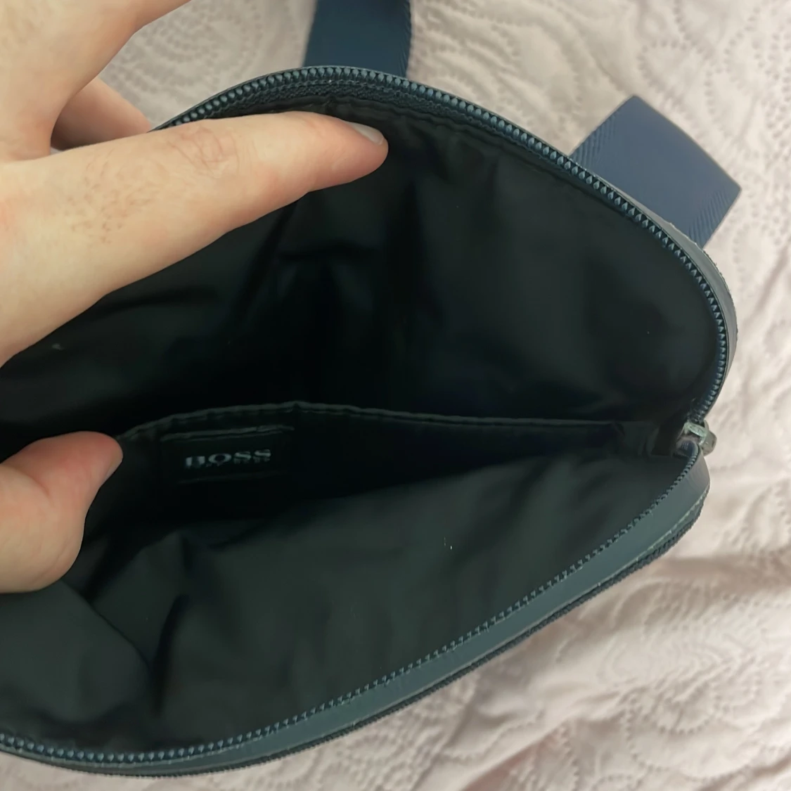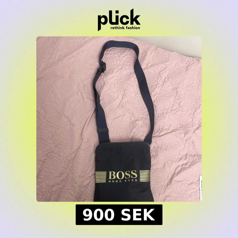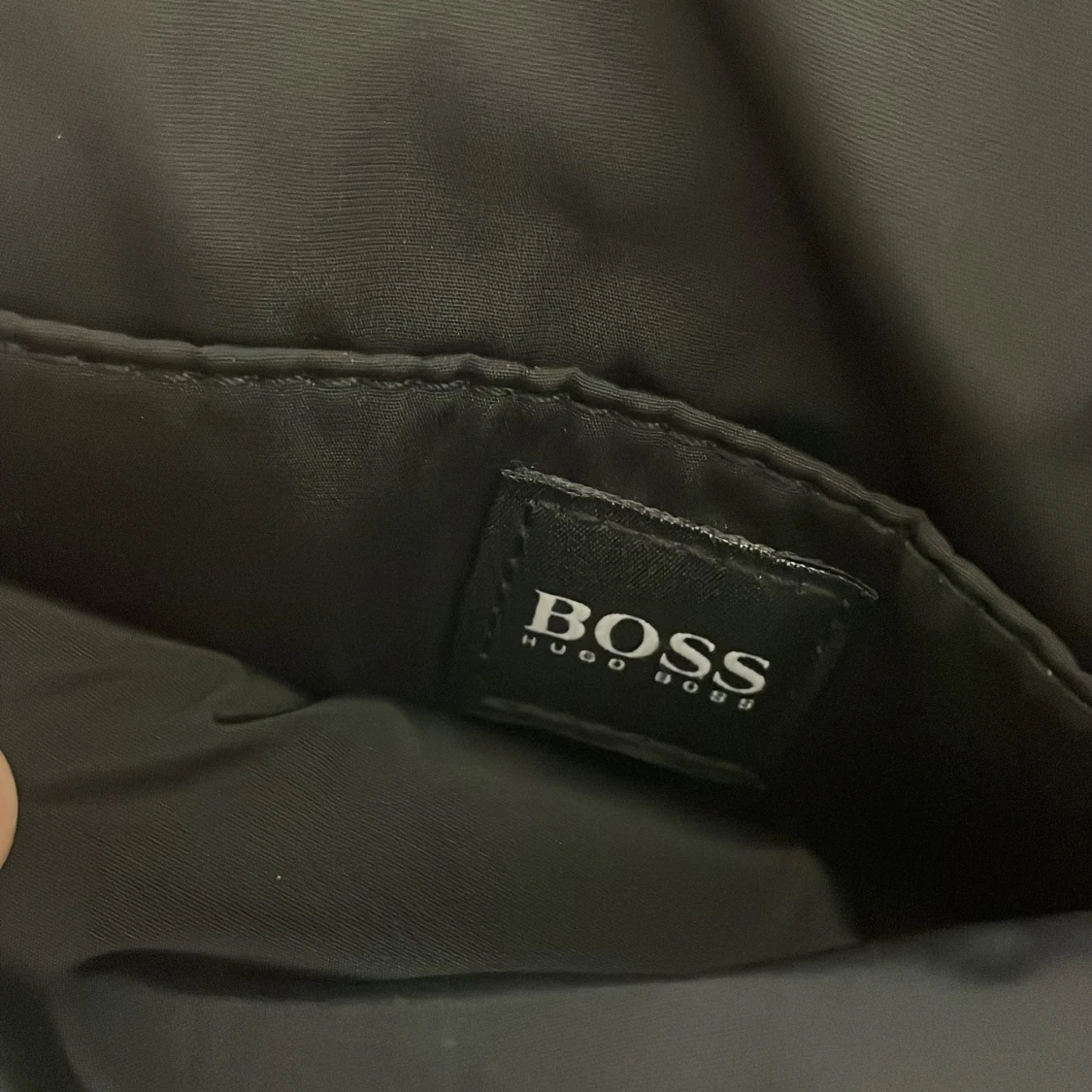 Äkta från Hugo boss butik. Snygg svart axelväska från Hugo Boss med justerbar rem och guldfärgat logotryck på framsidan. Väskan har dragkedja upptill och ett innerfack med Boss-märke. Perfekt storlek för mobil, plånbok och andra småsaker.