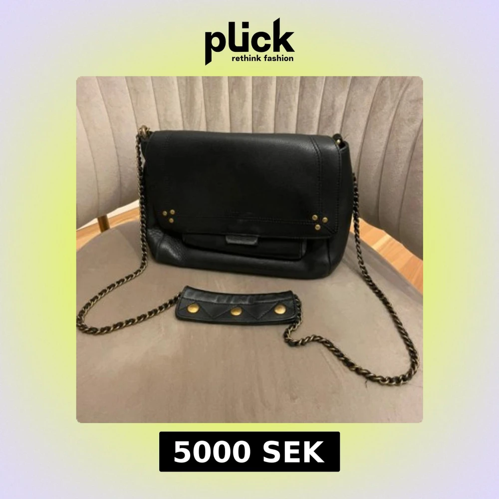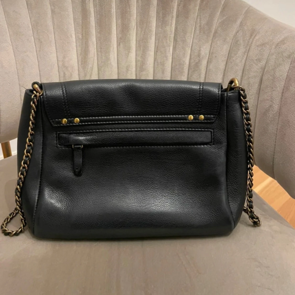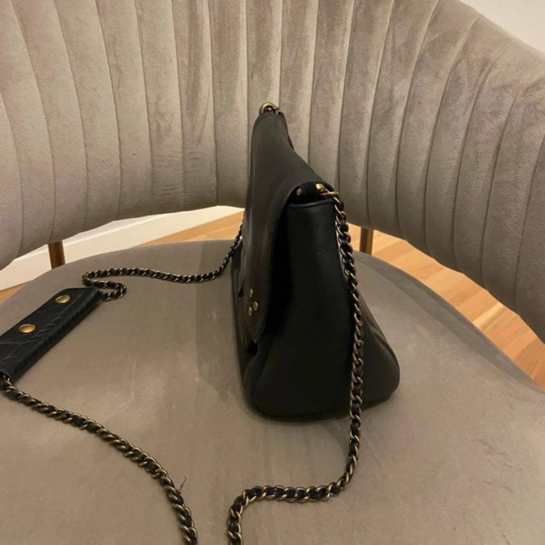 Stilren svart axelväska i skinn från Jerome Dreyfuss med guldfärgade nitar och kedjerem. Väskan har lock med tryckknapp, ytterfack med dragkedja och en avtagbar axelrem med snygga detaljer. Perfekt för alla tillfällen🥰