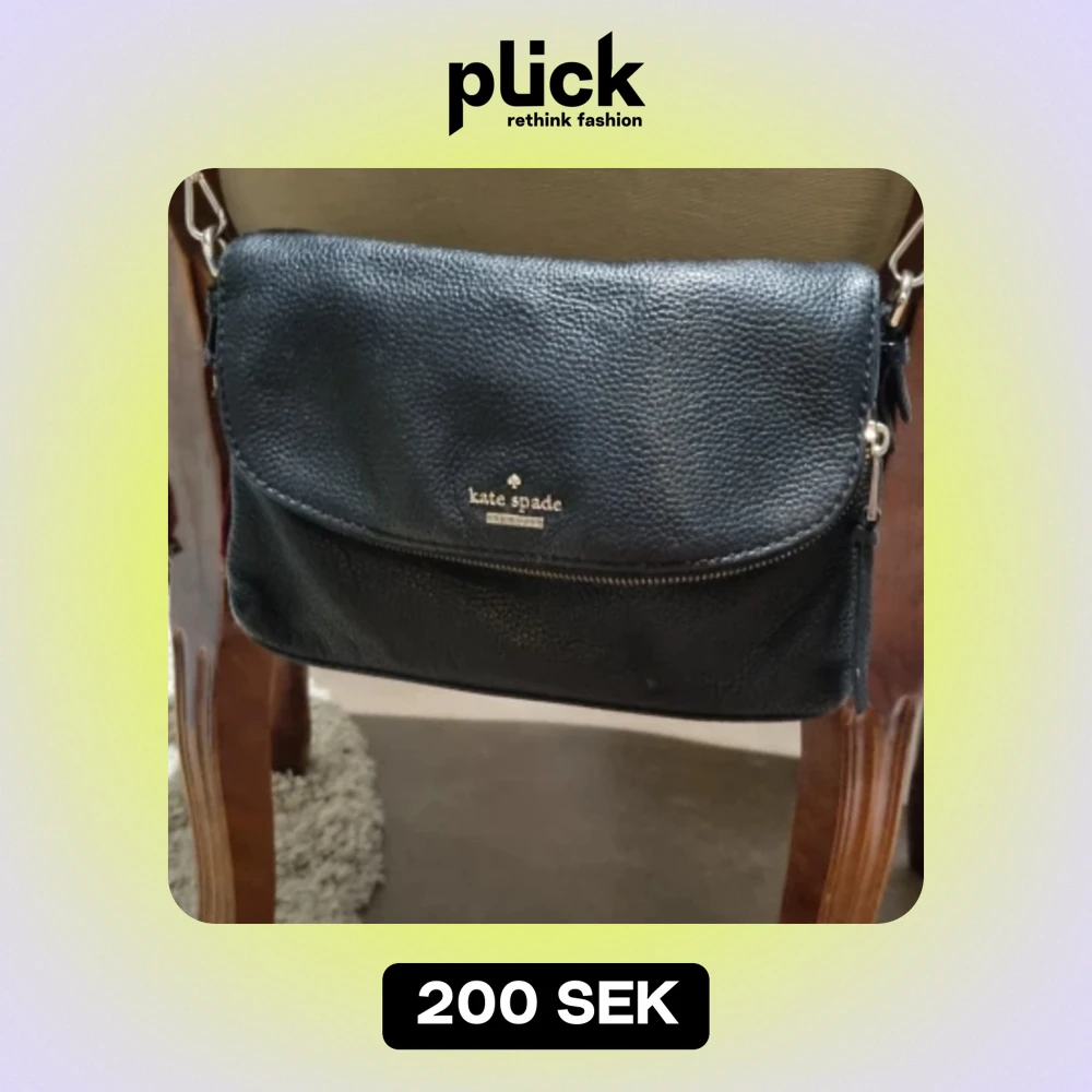 Säljer en snygg svart axelväska från Kate Spade i skinnimitation. Väskan har en praktisk dragkedja som går att ta bort och ett stilrent randigt foder inuti. Den har även en yttre del med två fack i. Perfekt för både vardag och fest!