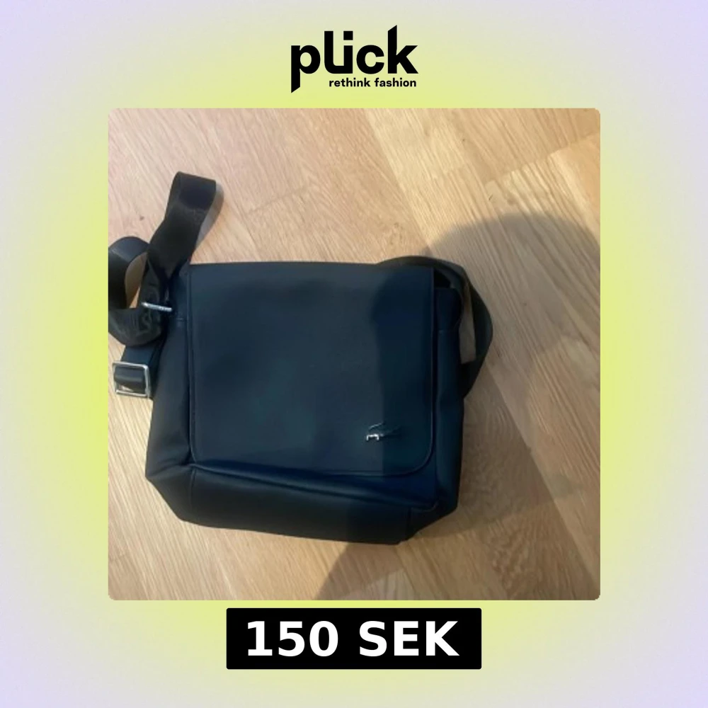 Snygg svart axelväska från Lacoste i stilren design med justerbart axelband och diskret krokodillogga i metall på framsidan. Väskan är tillverkad i slätt skinnliknande material och har ett praktiskt lock framtill.