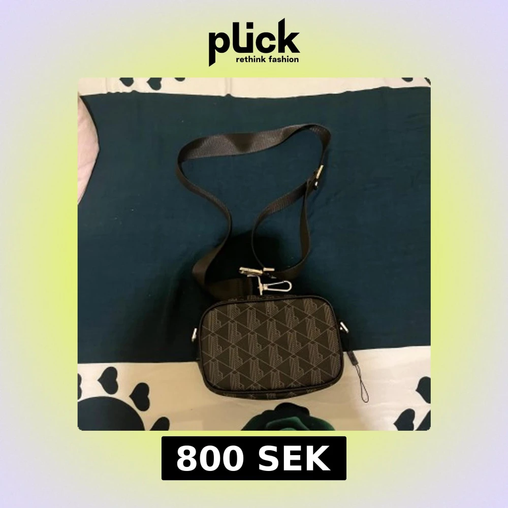 Snygg svart axelväska från Lacoste med geometriskt mönster och justerbar rem. Väskan har silverfärgade detaljer och en praktisk ficka framtill. Perfekt storlek för det viktigaste och stilren design med Lacoste-logga på framsidan.