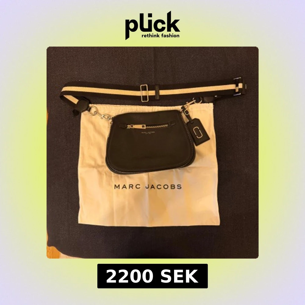 Snygg svart axelväska från Marc Jacobs i äkta skinn med justerbar randig axelrem. Väskan har silverfärgade dragkedjor, ett ytterfack med dragkedja och flera innerfack. Perfekt för dig som vill ha en stilren och praktisk väska med exklusiv känsla. Använd 2 gånger så väldigt bra skick, som ny.