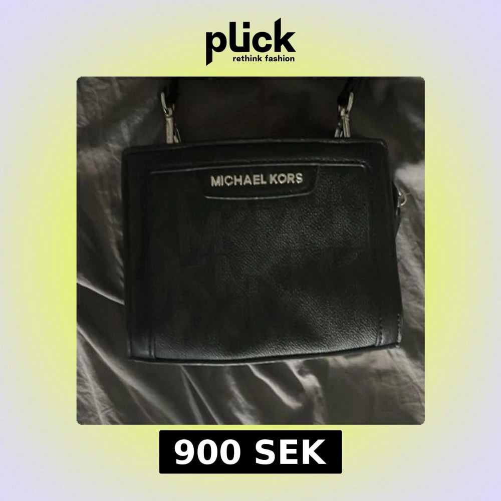 Snygg svart axelväska från Michael Kors i skinn med silverfärgade detaljer. Väskan har en stilren, fyrkantig form och justerbar axelrem. Invändigt finns fack för småsaker och fodret har diskret MK-mönster. Perfekt för dig som vill ha en clean och klassisk look.