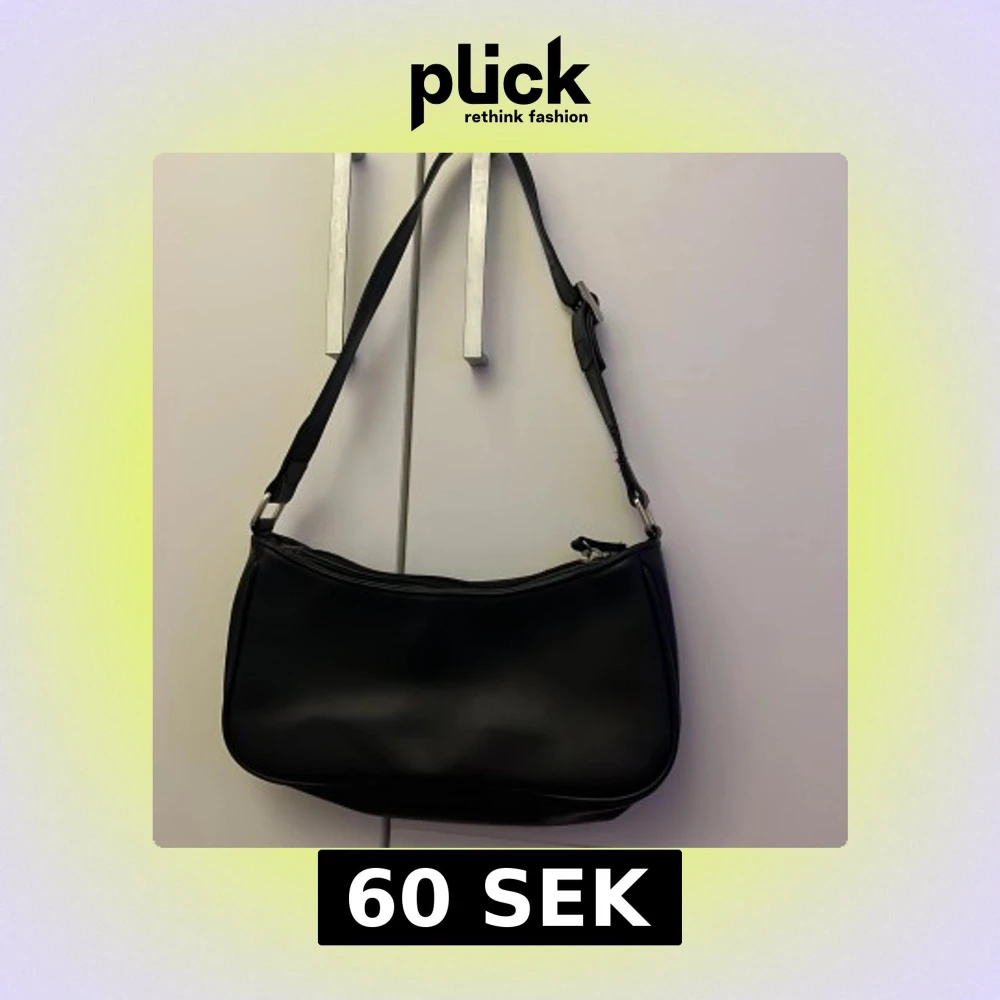 Snygg svart axelväska från Monki i stilren design. Väskan är tillverkad i slätt syntetmaterial och har justerbart axelband samt dragkedja upptill. Perfekt storlek för det viktigaste och passar till många olika outfits.