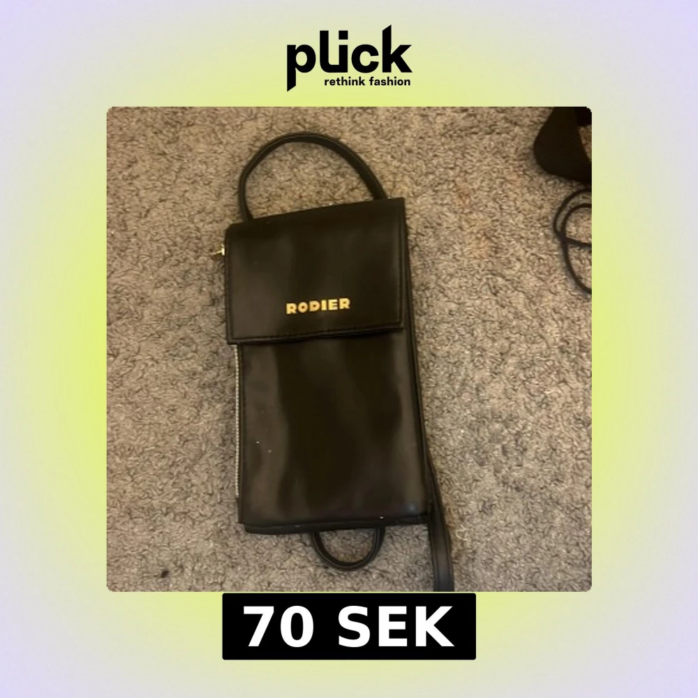 Snygg svart axelväska från Rodier i slätt skinn med guldiga detaljer och dragkedja på sidan. Väskan har ett stilrent, avlångt format och lock med magnetknäppning. Perfekt för mobilen och småsaker när du är på språng.