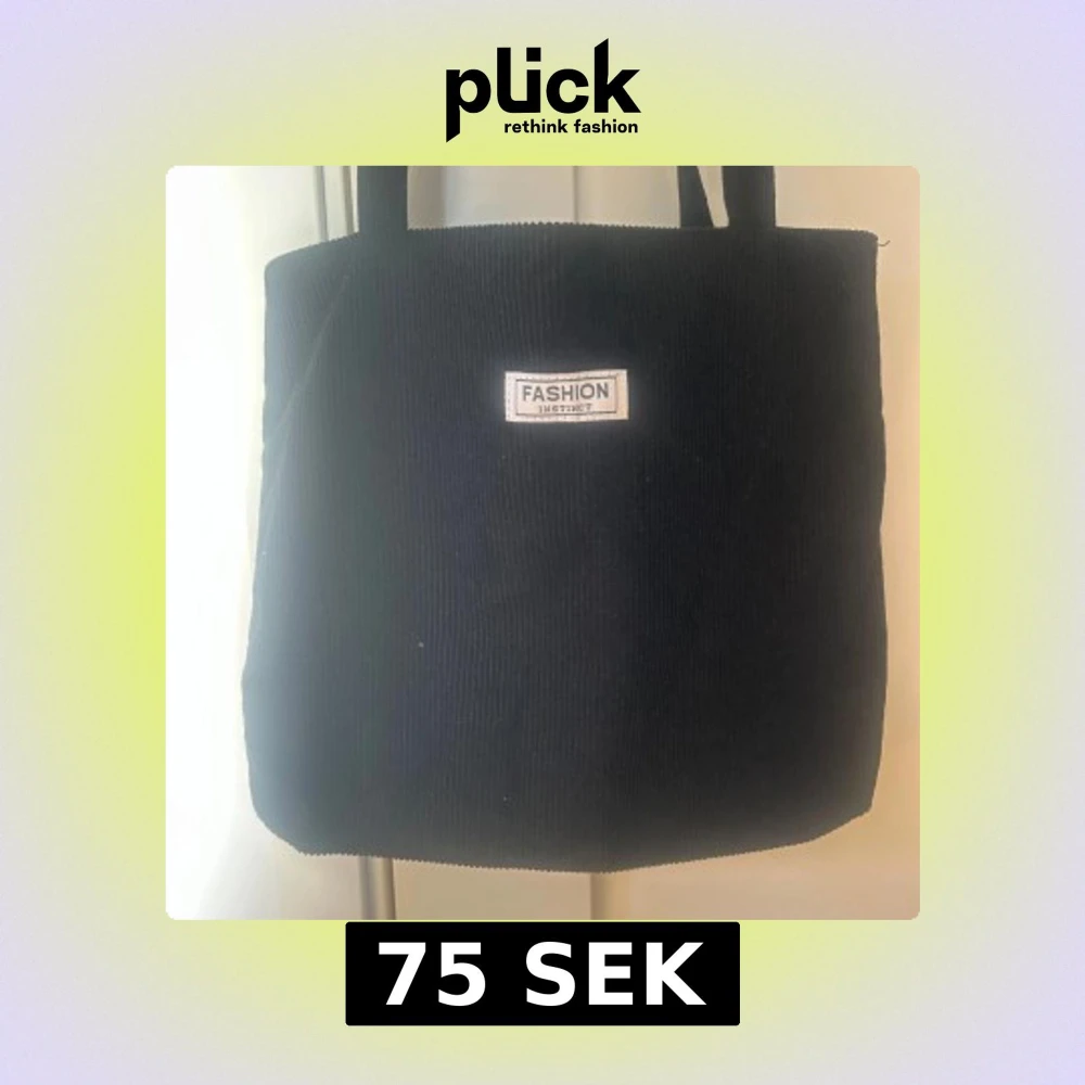 Snygg svart axelväska med en enkel design. Väskan har två handtag och en liten etikett med texten 'Fashion Instinct” på framsidan. Perfekt för att bära med sig det nödvändigaste.