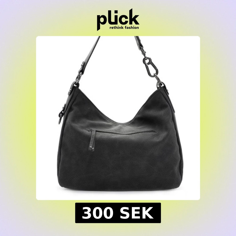 Cool svart axelväska från Suri Frey med perforerat syntetmaterial och snygga metalldetaljer. Väskan har en bred axelrem, flera fack med dragkedja och ett mönstrat innerfoder med logotyp. Är lite missfärgade på ringarna vilket man ser på bild 3 och har en fläck på insidan som man ser på sista bilden. Har även ett längre axelband som går att ta av och sätta på. Köpt för 679kr. Väskan är mörkgrå.