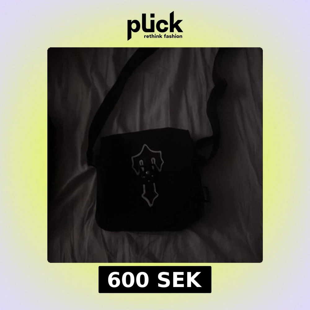 Snygg svart axelväska från Trapstar med ett unikt spänne framtill. Väskan har en justerbar axelrem och flera fack med dragkedja för praktisk förvaring. Perfekt för att bära med sig det nödvändigaste med stil. 9/10 skick äkta använd runt 10-15 gånger