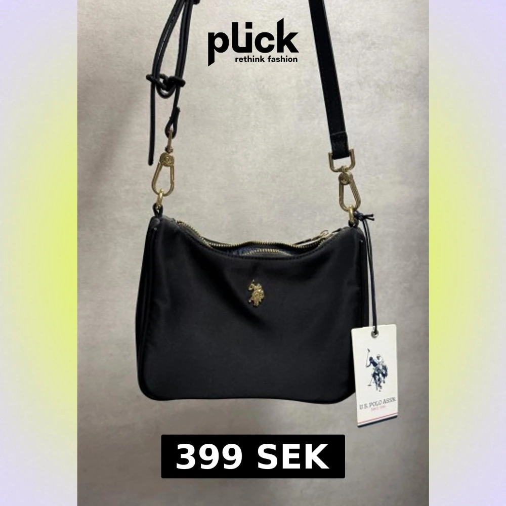 Stilren svart axelväska från U.S. Polo Assn. med justerbar rem och guldfärgade metalldetaljer. Väskan har dragkedja upptill och en liten logga framtill. Perfekt storlek för det viktigaste och enkel att matcha till olika outfits.