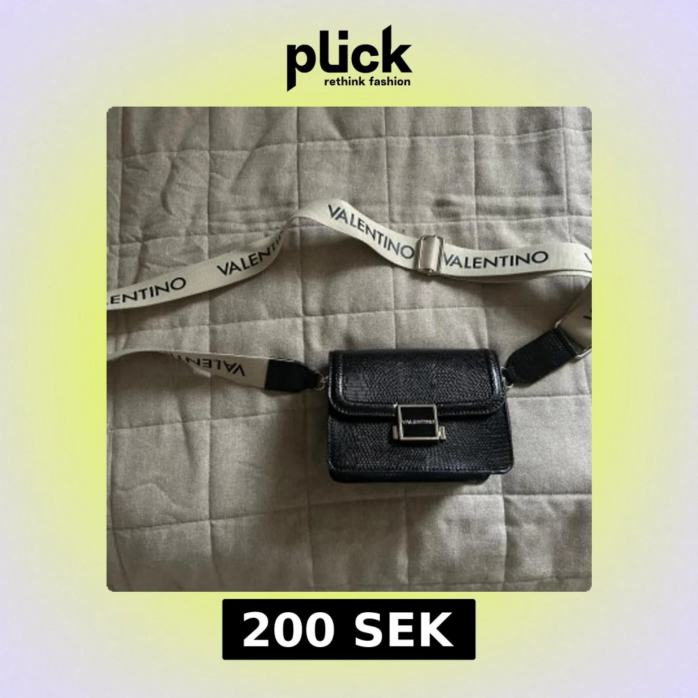 Snygg svart axelväska från Valentino med justerbar axelrem och elegant spänne framtill. Använd några gånger men i väldigt gott skick. Köpt på en outlet. Tillkommer flera band.