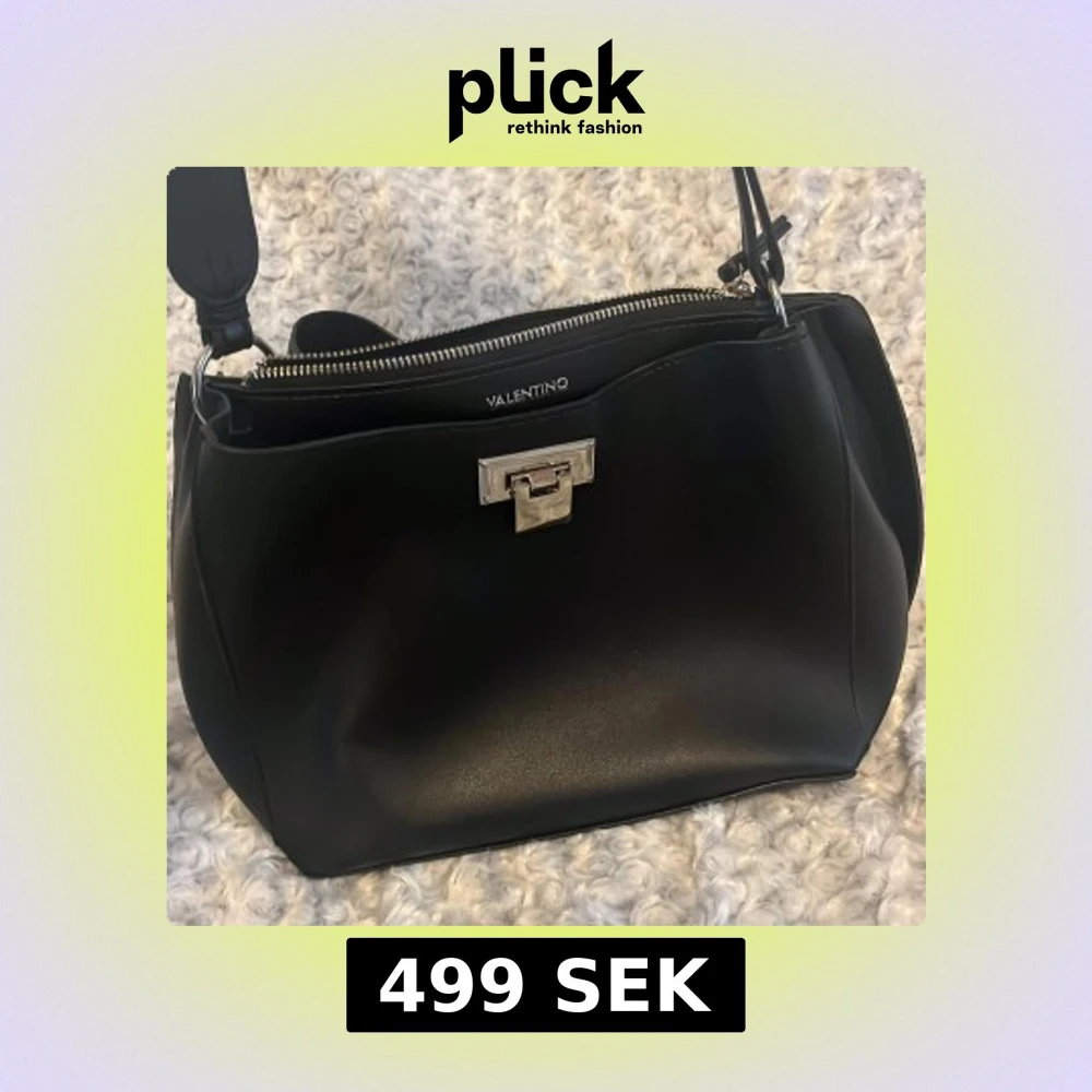 Snygg svart axelväska från Valentino med silverfärgad dragkedja och spänne. Väskan har en stilren design och är perfekt för att bära dina dagliga nödvändigheter☺️ Använd men fortfarande bra skick! Skriv vid frågor💕
