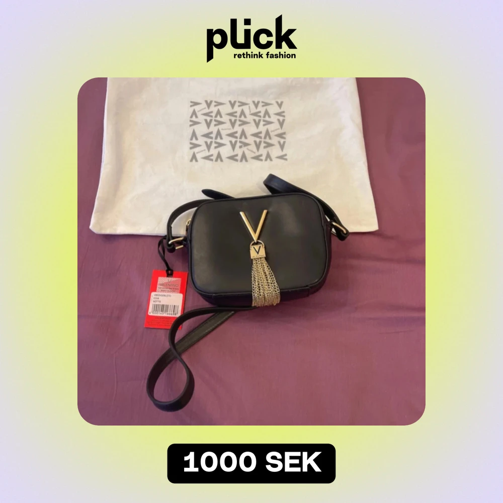 Säljer en snygg svart axelväska från Valentino i nytt skick. Väskan har en elegant gulddetalj med tofs på framsidan och en praktisk dragkedja upptill. Perfekt för både vardag och fest! Kommer med originalpåse.