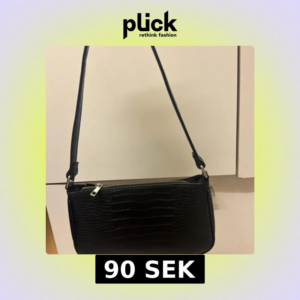 Snygg svart axelväska med croco-mönstrad yta och silverfärgad dragkedja. Stilren och enkel design med justerbar axelrem. Perfekt för dig som vill ha en trendig och praktisk väska till vardags.