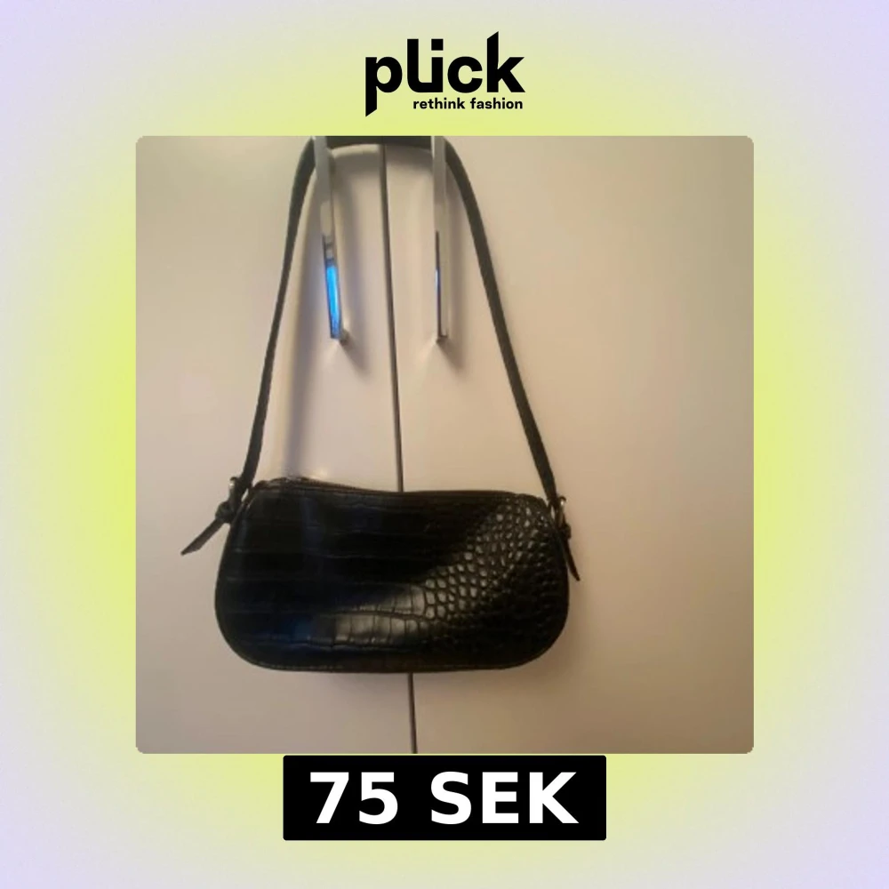 Svart glansig väska från okänt märke. Köpt för ca 200kr men säljer för 75kr då den är mycket använd. Har innerficka med dragkedja. Får plats mycket i väskan. Går att justera längd i banden. Kontakta ifall du har frågor eller vill köpa🫰