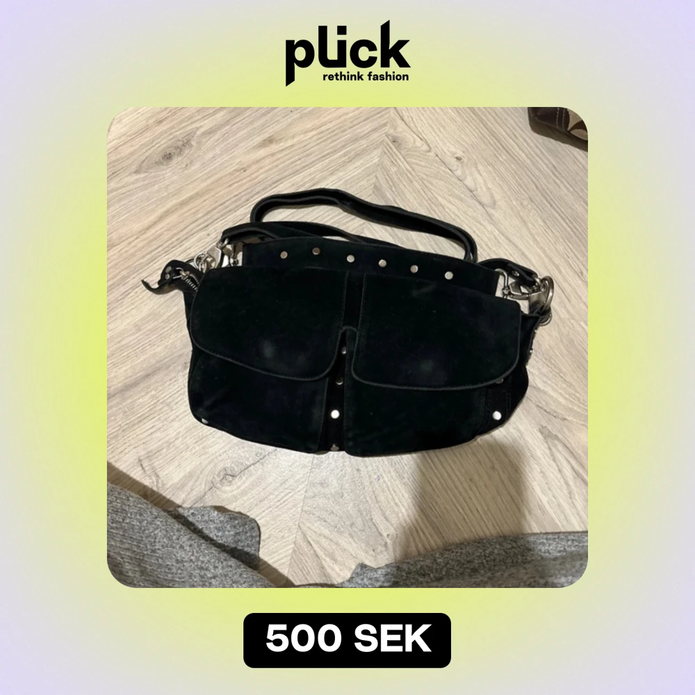 Säljer en snygg svart axelväska i mocka från Unlimit. Väskan har en justerbar axelrem och praktiska fickor framtill. Insidan är fodrad med orange detaljer och har en dragkedja för säker förvaring. Perfekt för både vardag och fest!
