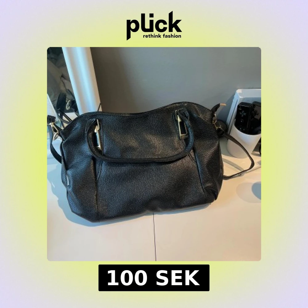 Snygg svart axelväska i skinn med guldiga metalldetaljer. Väskan har flera fack inuti, inklusive ett med dragkedja, och gott om plats för allt du behöver. Perfekt för dig som vill ha en stilren och rymlig väska till vardagen.