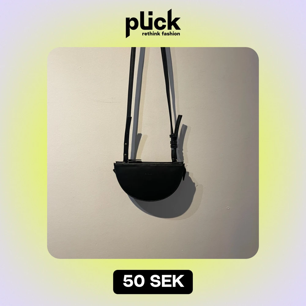 Snygg och stilren svart axelväska i skinn med justerbar rem. Perfekt för både vardag och fest! Väskan har en halvmåneform och är enkel att matcha med olika outfits. Ett måste i garderoben för den som gillar minimalistisk stil.