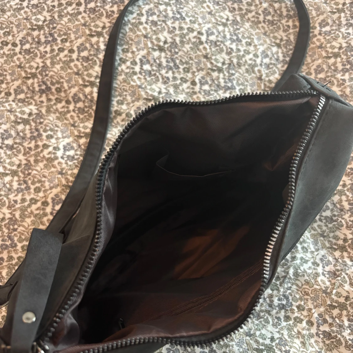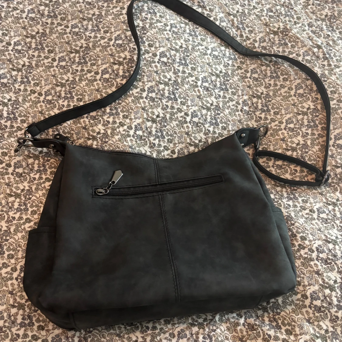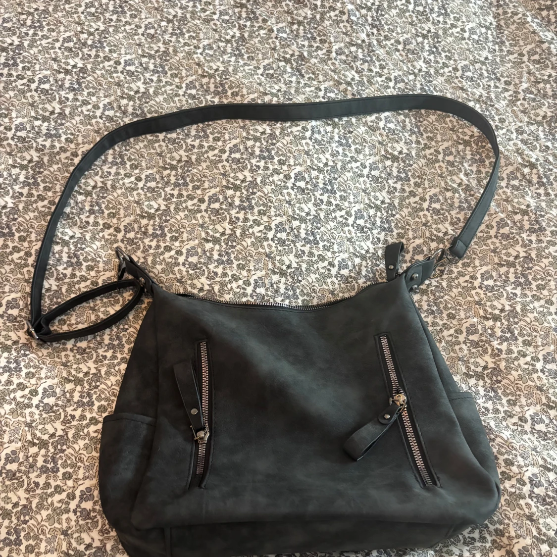Snygg svart axelväska med lång justerbar rem och flera dragkedjefickor både fram och bak. Väskan är rymlig med ett stort huvudfack och innerficka. Jag har köpt denna på Plick och vet ej vart den är ifrån därav priset. Jag har aldrig använt den och den såg i princip ny ut när jag fick den.