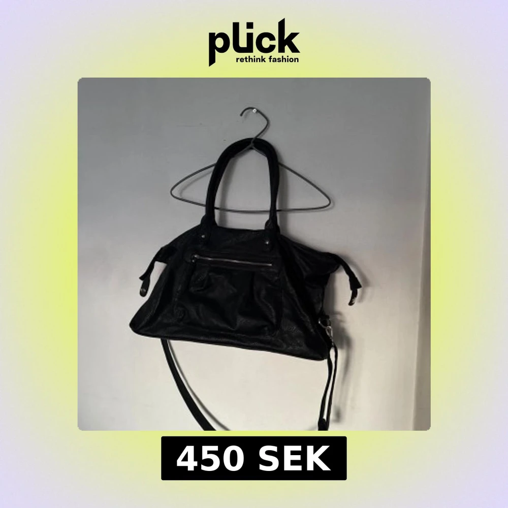 Stor svart axelväska med både handtag och lång axelrem. Väskan har en dragkedja framtill och flera fack inuti, perfekt för att få plats med allt du behöver. Tillverkad i skinnimitation med stilrena detaljer och silverfärgade metalldelar. Kostade 1400 och är i äkta läder