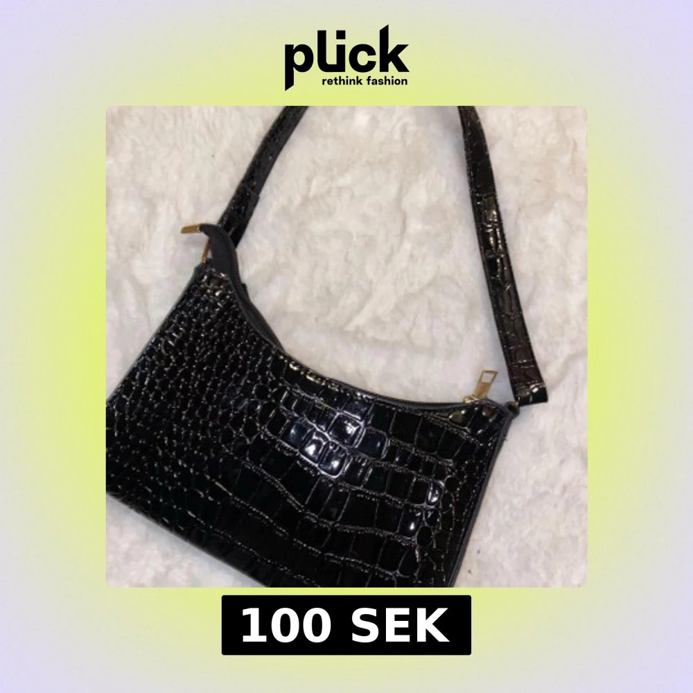 Snygg svart axelväska med krokodilpräglat mönster. Väskan har en dragkedja upptill och är perfekt för att bära dina nödvändigheter med stil. Den har en elegant design som passar till många olika tillfällen.