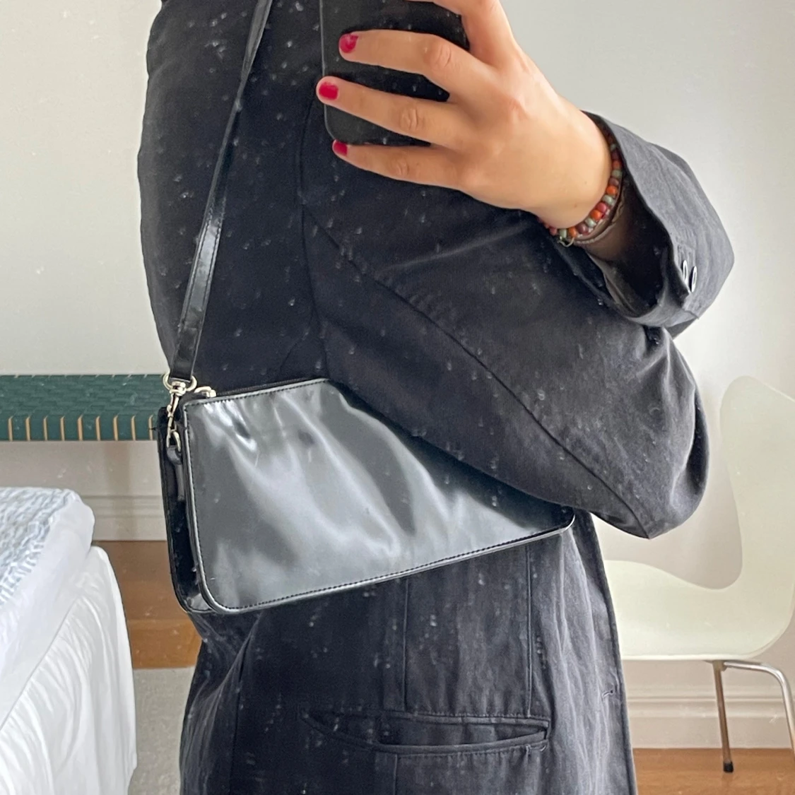 Säljer en snygg svart axelväska i läder från St. Sulpice.