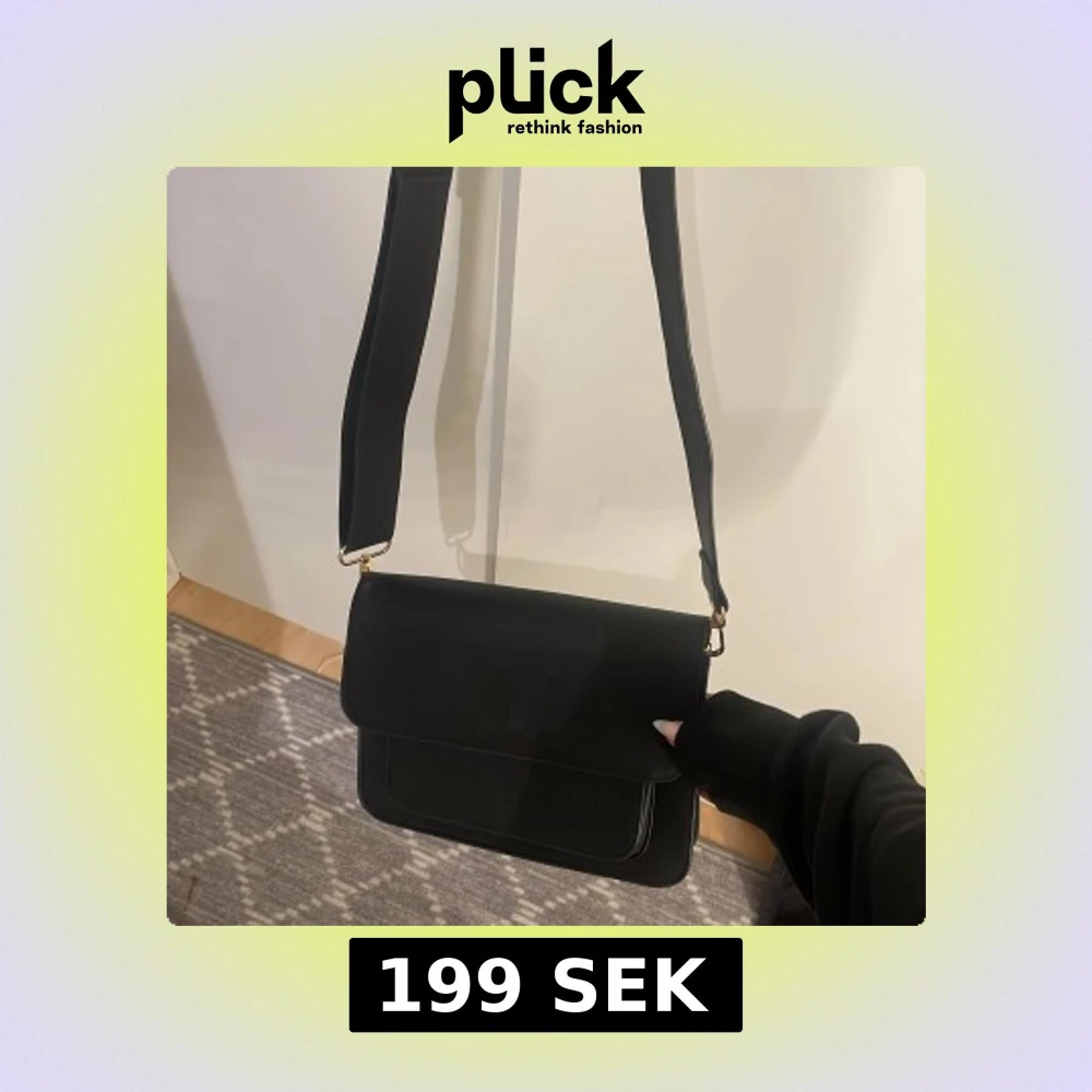 Säljer en stilren svart axelväska med bred axelrem och guldiga metalldetaljer. Väskan har ett minimalistiskt, fyrkantigt snitt och flera fack inuti för att hålla ordning på dina grejer. Använd fåtal gånger, hör av dig vid funderingar!❣️