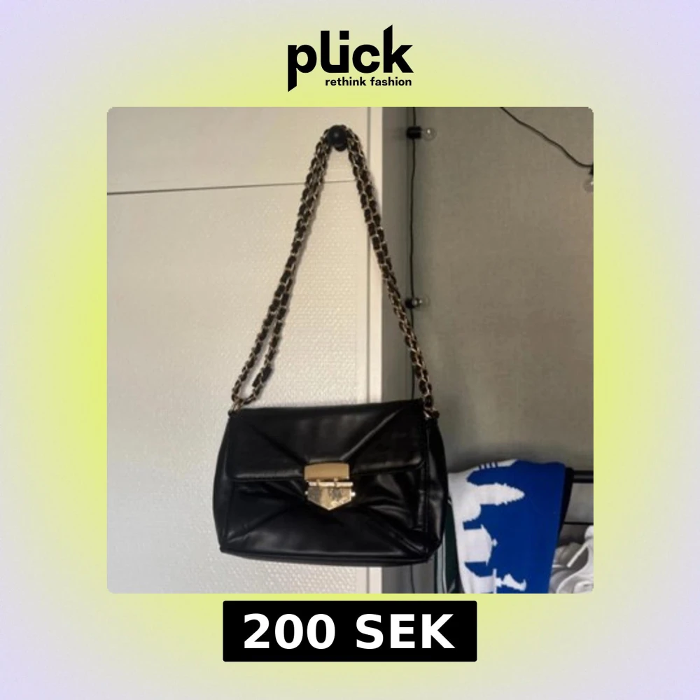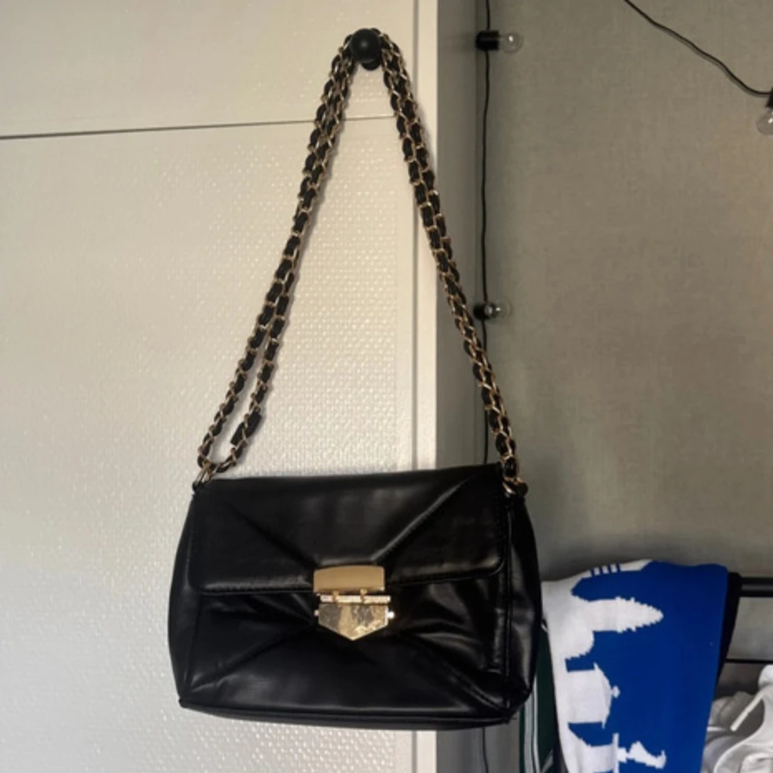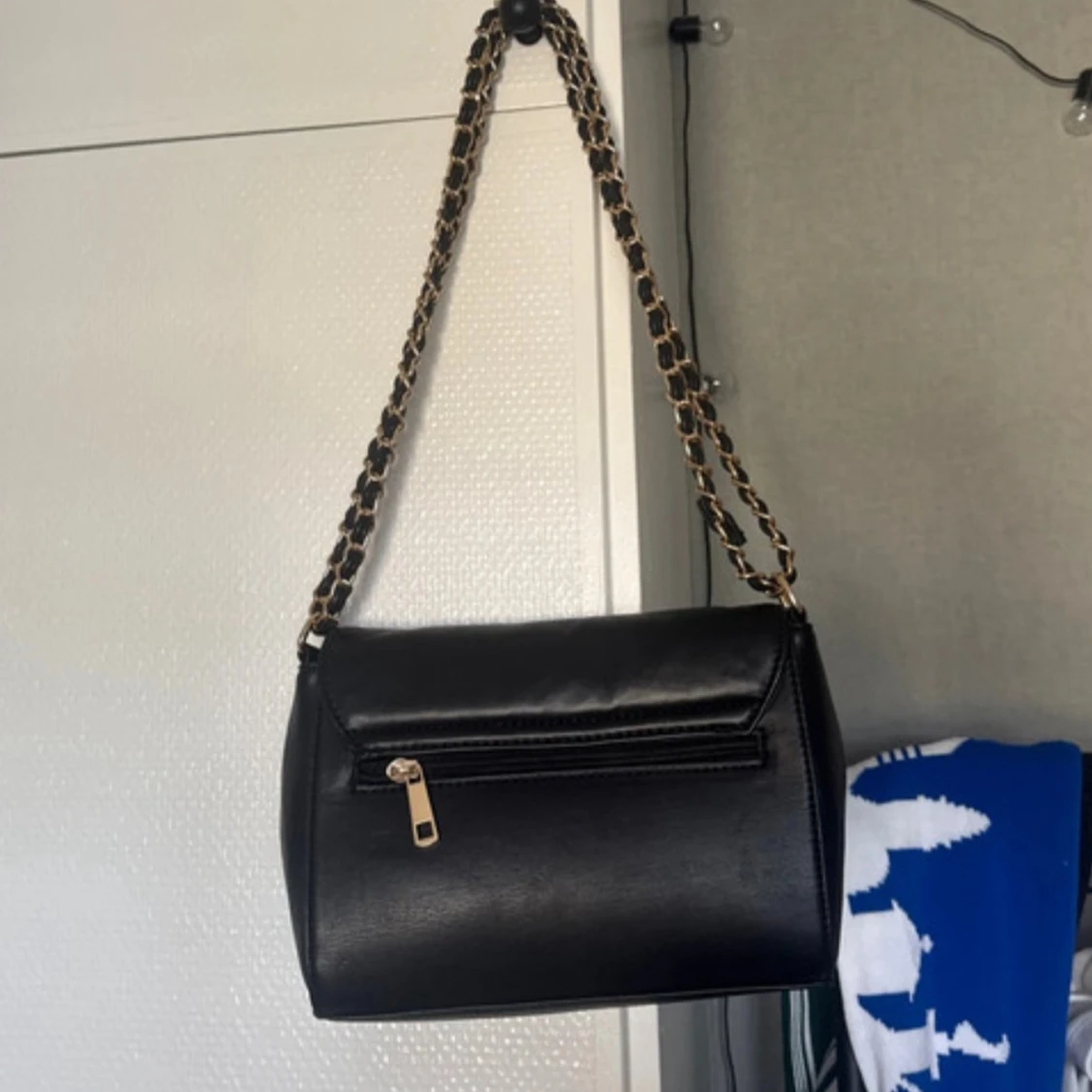 Snygg svart axelväska i skinnimitation med guldfärgad kedjerem och dekorativt lås framtill. Väskan har quiltad framsida, dragkedjeficka på baksidan och rymligt innerfack. Perfekt för dig som vill ha en stilren och trendig väska med lyxig känsla.