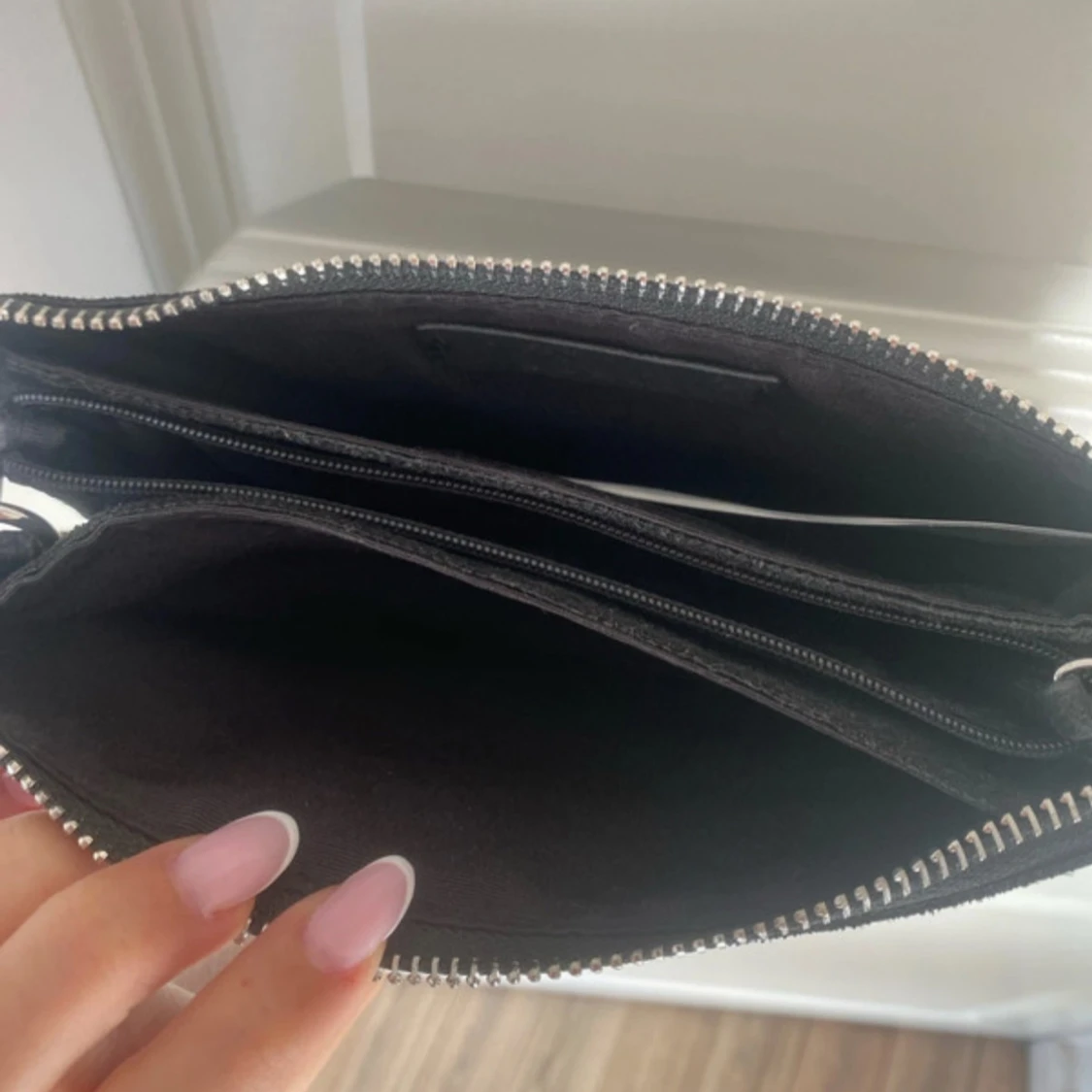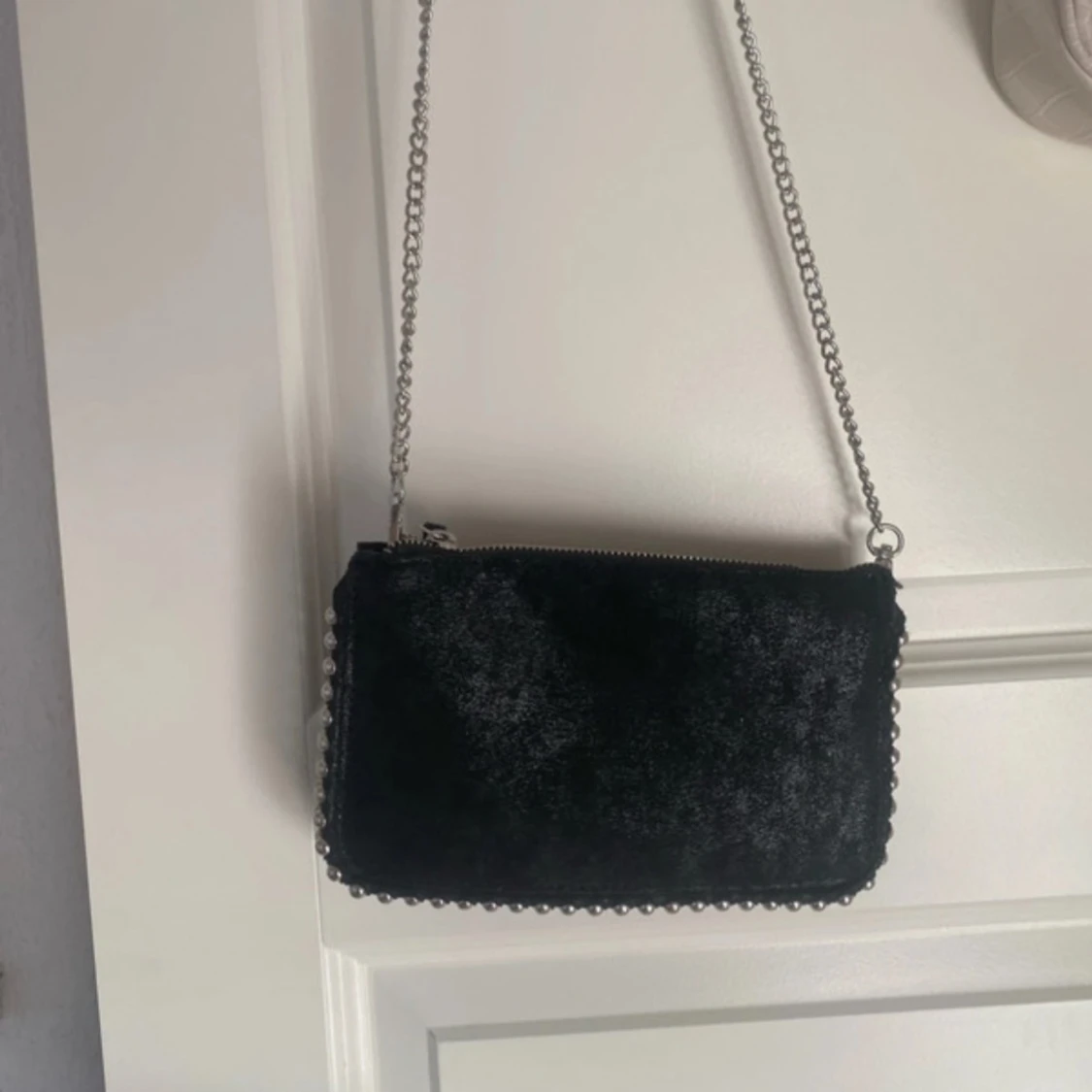 Snygg svart axelväska med kedja och dragkedja. Perfekt för en kväll ute eller en dag på stan. Väskan har en stilren design och är lätt att matcha med olika outfits.