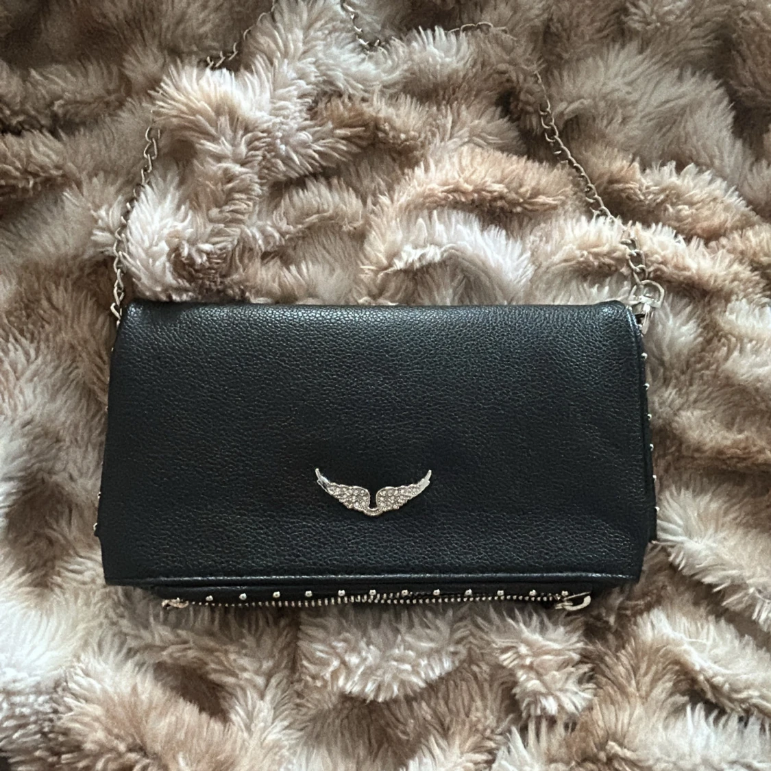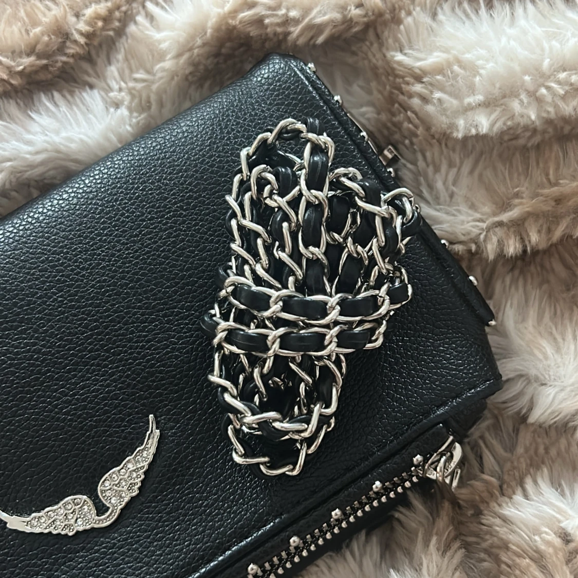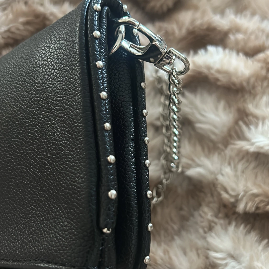 Säljer en svart axelväska med fina silverdetaljer. Väskan kommer med kedja som axelrem och är aldrig använd, helt som ny!