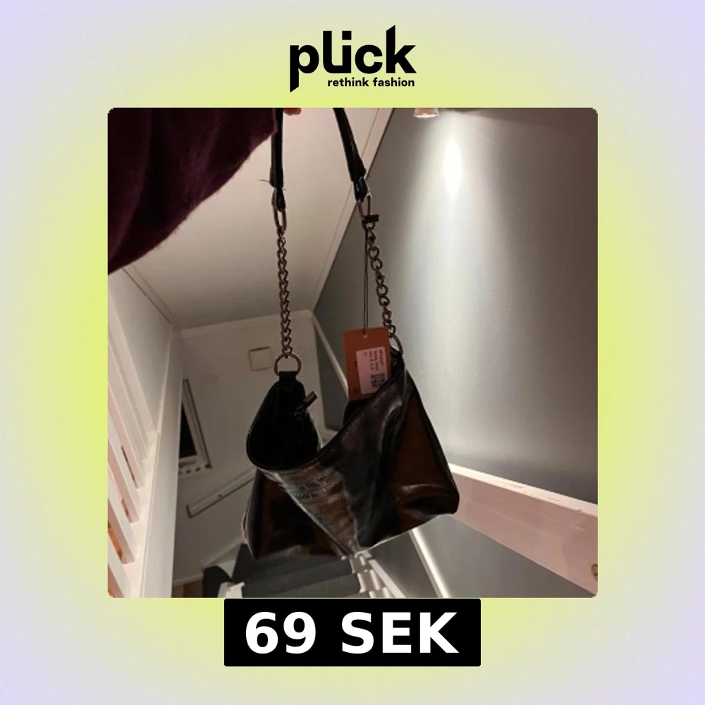 Snygg svart axelväska i glansigt skinnimitation med croco-mönster. O andvänd.